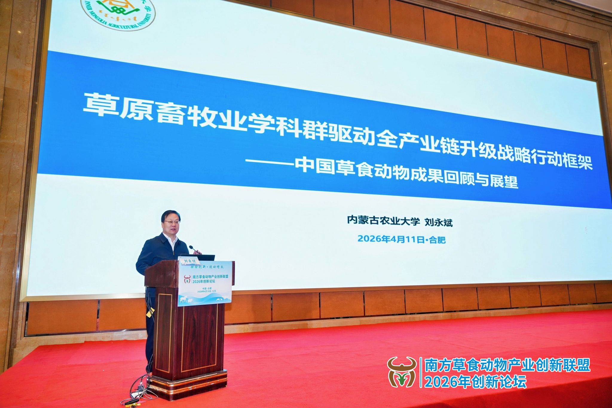 本网讯 4月10日-12日,南方草食动物产业创新联盟2026年创新论坛在合肥召开。内蒙古农业大学校长、国家肉羊产业技术体系首席研究员刘永斌,全国畜牧总站牧业经济与国际合作处处长薛泽冰,中国农业科学院北京畜牧兽医研究所研究员王加启、熊本海,校党委常委、副校长陈黎卿出席活动。