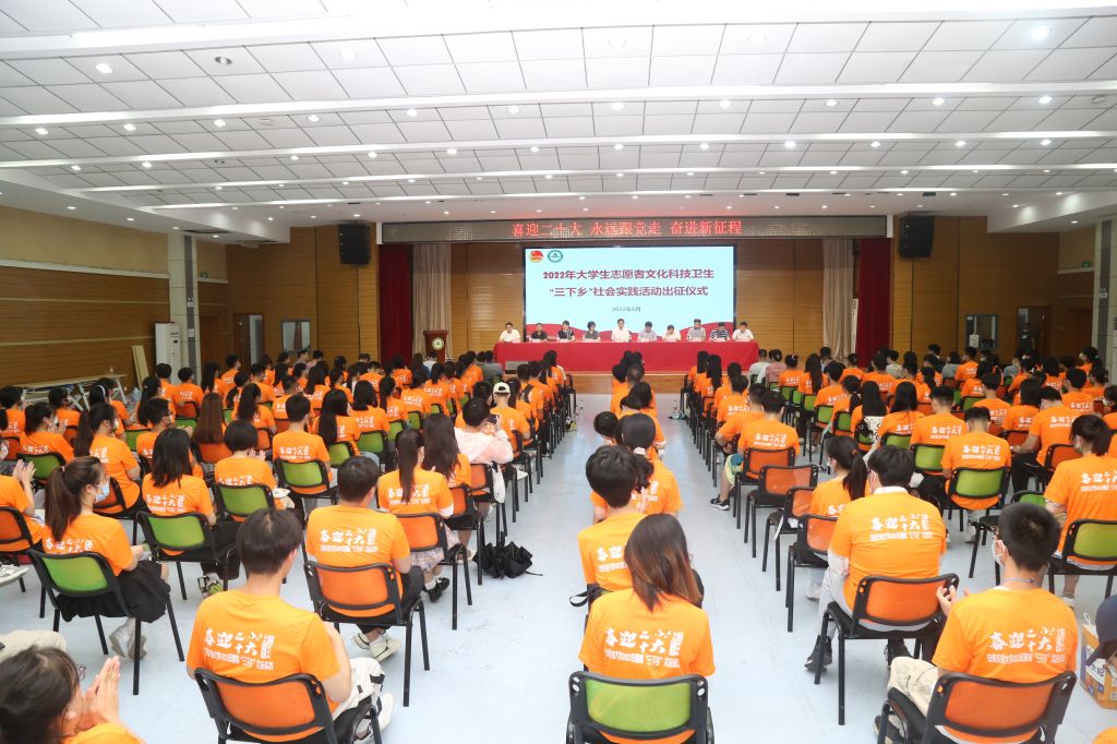 本网讯 6月17日下午,我校2022年暑期“三下乡”社会实践活动出征仪式暨培训会在大学生活动中心举行。校党委副书记裴树东,办公室、宣传部、教务处、新农院、研工部、学工部、招就处、团委等单位负责人,各学院分管学生工作副书记、团委负责人,暑期“三下乡”社会实践校级重点、校级团队指导老师和成员代表参加了出征仪式。