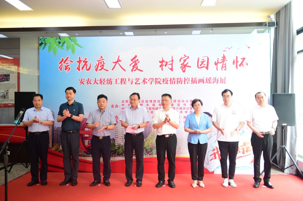 本网讯 7月23日上午,由我校与合肥市瑶海区疫情防控应急指挥部办公室、瑶海区委宣传部、中国服装原创设计基地联合举办的“疫情防控插画巡回展”在瑶海区举行。校党委常委、副校长操海群出席活动并致辞。瑶海区负责人和我校轻纺工程与艺术学院负责人参加活动。