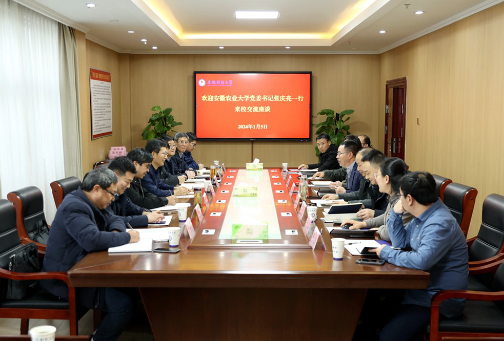 本网讯 1月5日,校党委书记张庆亮和党委常委、副校长吴祥为一行赴安徽财经大学调研。安徽财经大学党委副书记、校长朱红军和党委常委、副校长储德银,以及两校相关部门主要负责同志出席座谈会。