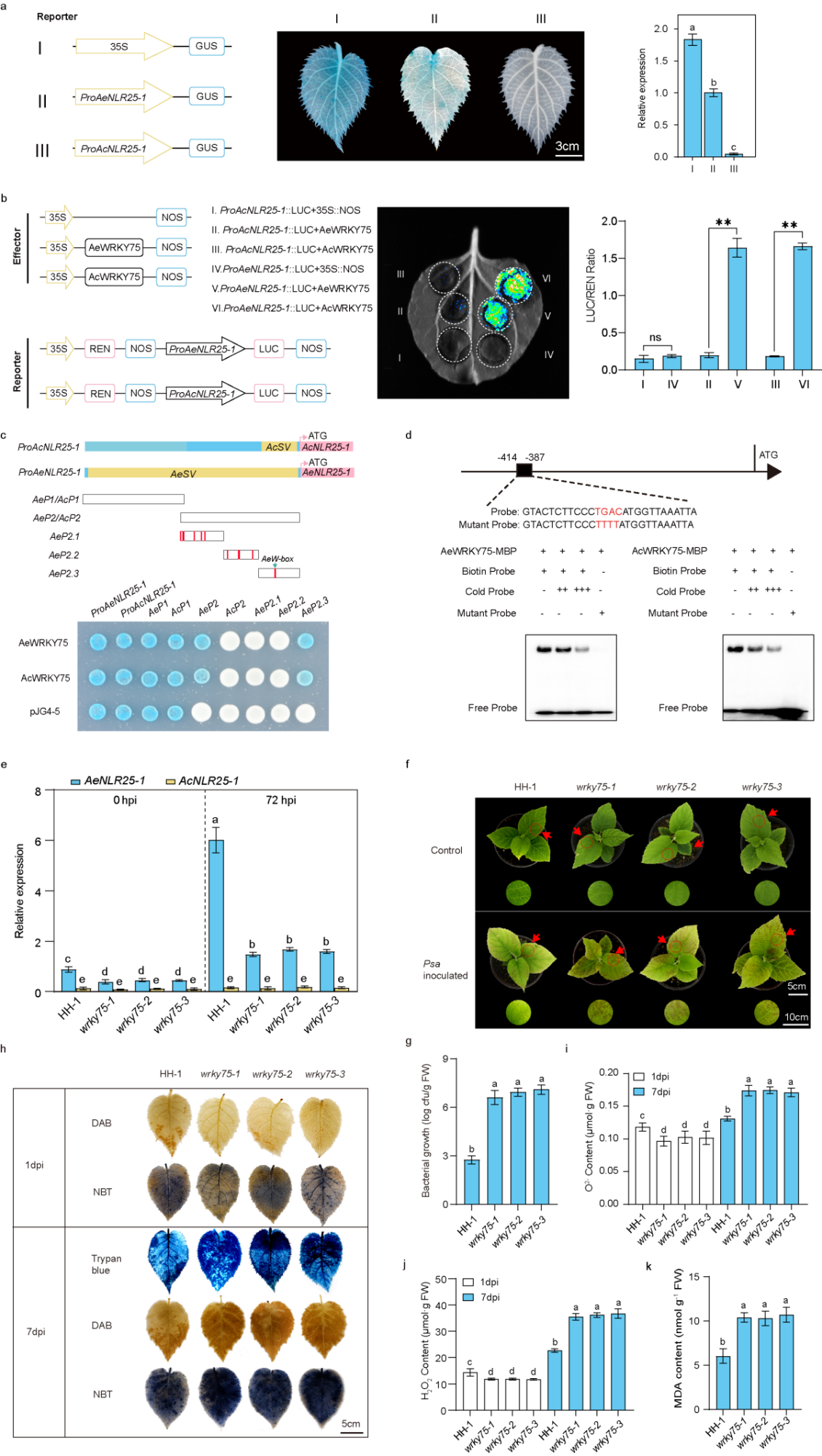 ▲ WRKY75结合并激活AeNLR25-1启动子赋予猕猴桃溃疡病抗性