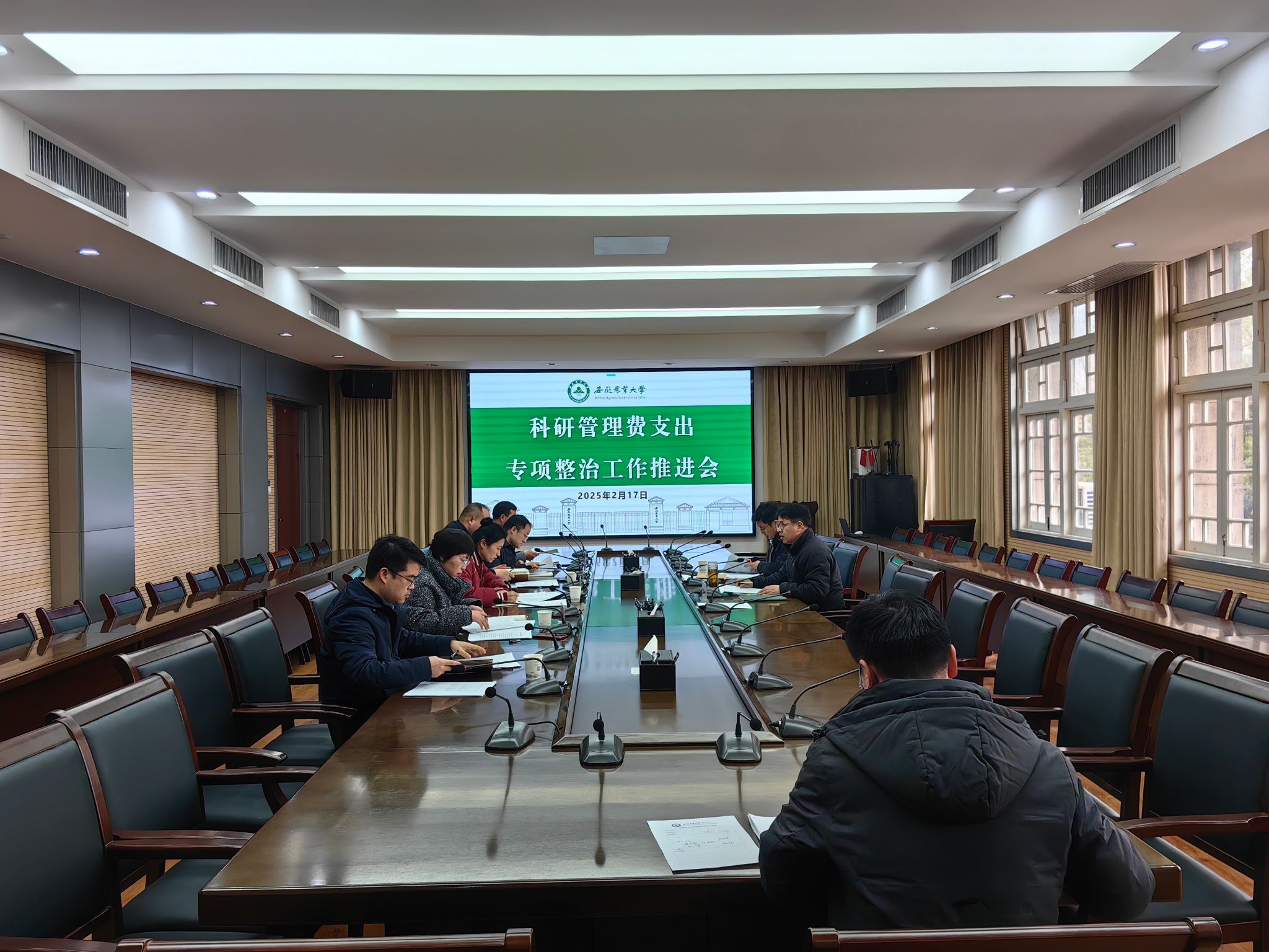 本网讯 2月17日下午,科研管理费支出问题专项整治工作推进会在第三会议室召开。党委常委、副校长吴祥为主持会议,专项整治工作领导小组成员单位参加会议。
