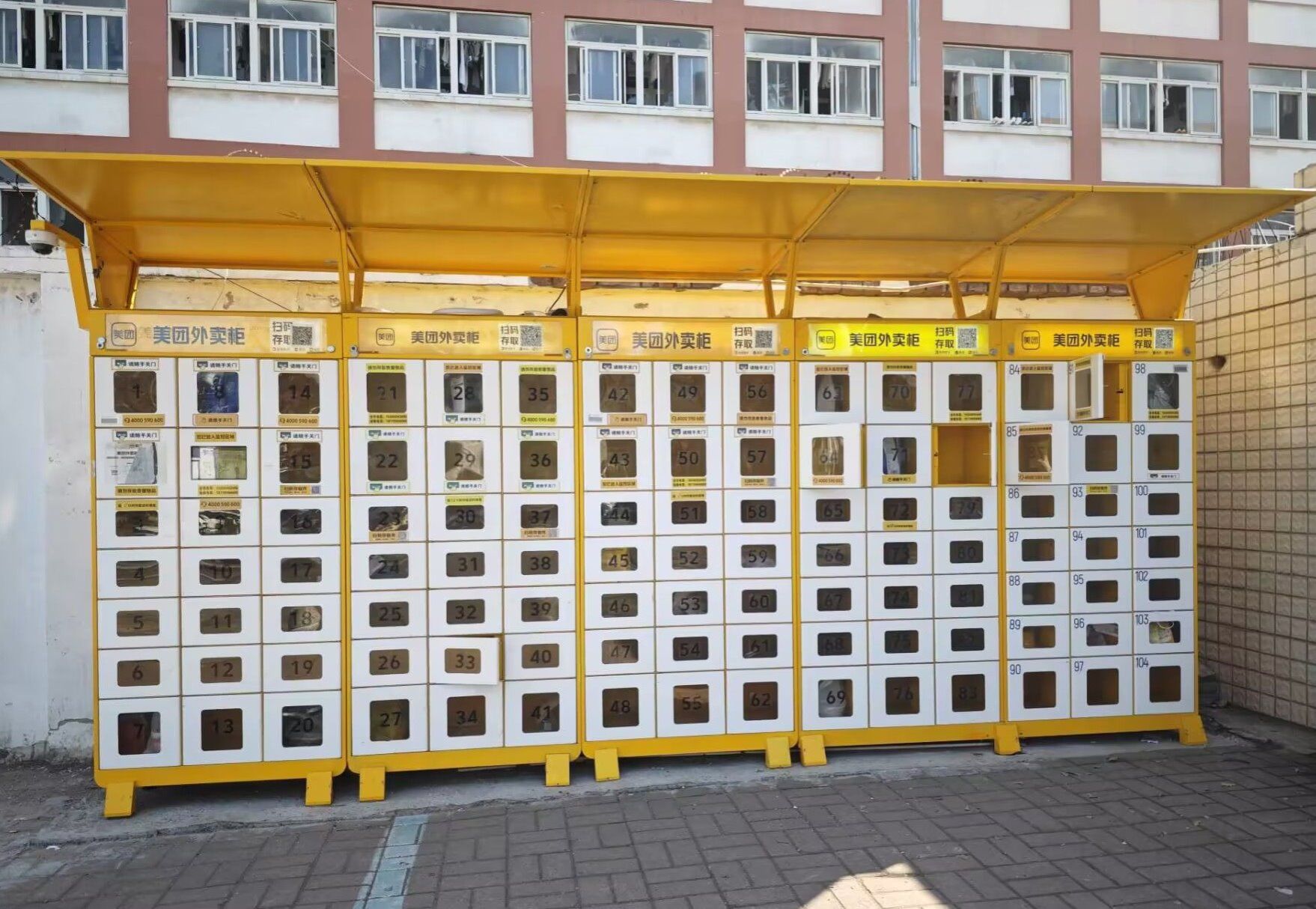 本网讯 近日,在学校的东门、北二门、北三门和学生社区北区周边,智能外卖柜整齐有序排列,给师生生活带来便利。