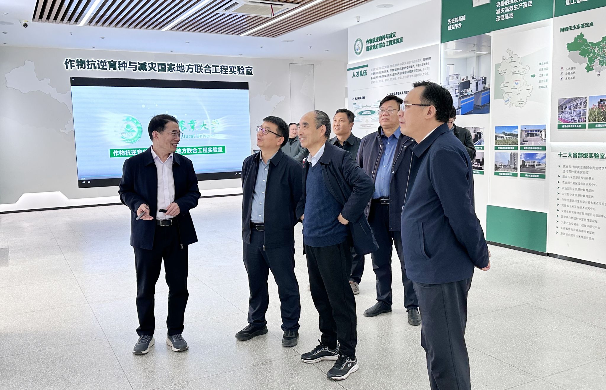 本网讯 3月22日,华中农业大学校长严建兵教授来校调研指导工作。校党委副书记、校长操海群教授和学校老领导宛晓春教授、程备久教授陪同参观并座谈交流。