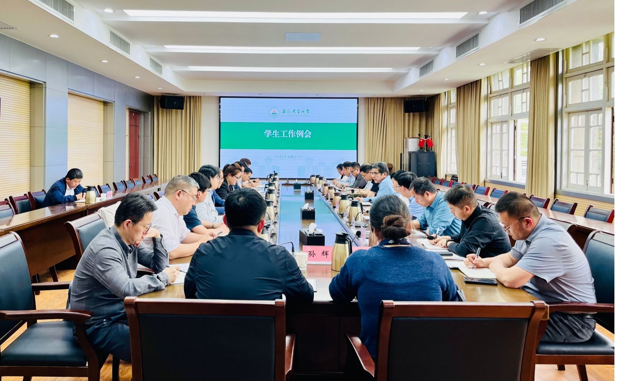 本网讯 4月27日上午,学校在第三会议室召开学生工作例会。校党委副书记董雨出席会议。党委宣传部、教务处、学工部(处)、研工部、国合处、总务部、保卫处、团委等单位负责人,各学院学生工作负责人参加会议。