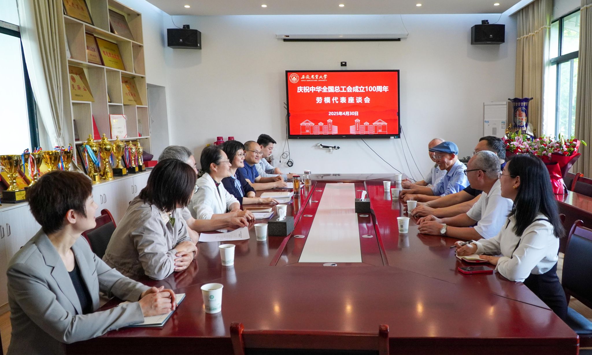 本网讯 4月30日,我校召开庆祝中华全国总工会成立100周年劳模代表座谈会,校党委常委、副校长李红出席会议并讲话。党委宣传部、教师工作部、工会等单位负责同志,部分分工会主席以及“劳模创新工作室”负责人参加座谈。