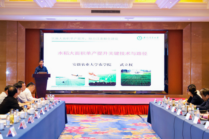 研讨会上,埇桥区负责同志致欢迎词。我校社会合作处负责同志介绍了我校服务省粮油作物大面积单产提升相关成果。学校相关专家围绕小麦、玉米、大豆、水稻等粮油作物大面积单产提升的技术要点、技术路径和机制创新进行解读,介绍了作物种植、管理、技术推广等方面的研究成果和实践经验。宿州市埇桥区、合肥市庐江县代表结合各自县域实际分别作了交流发言。省内外专家结合我省农业发展的实际情况,解读了相关政策,针对重要粮油作物生产实际问题,提出了应对举措和建议。