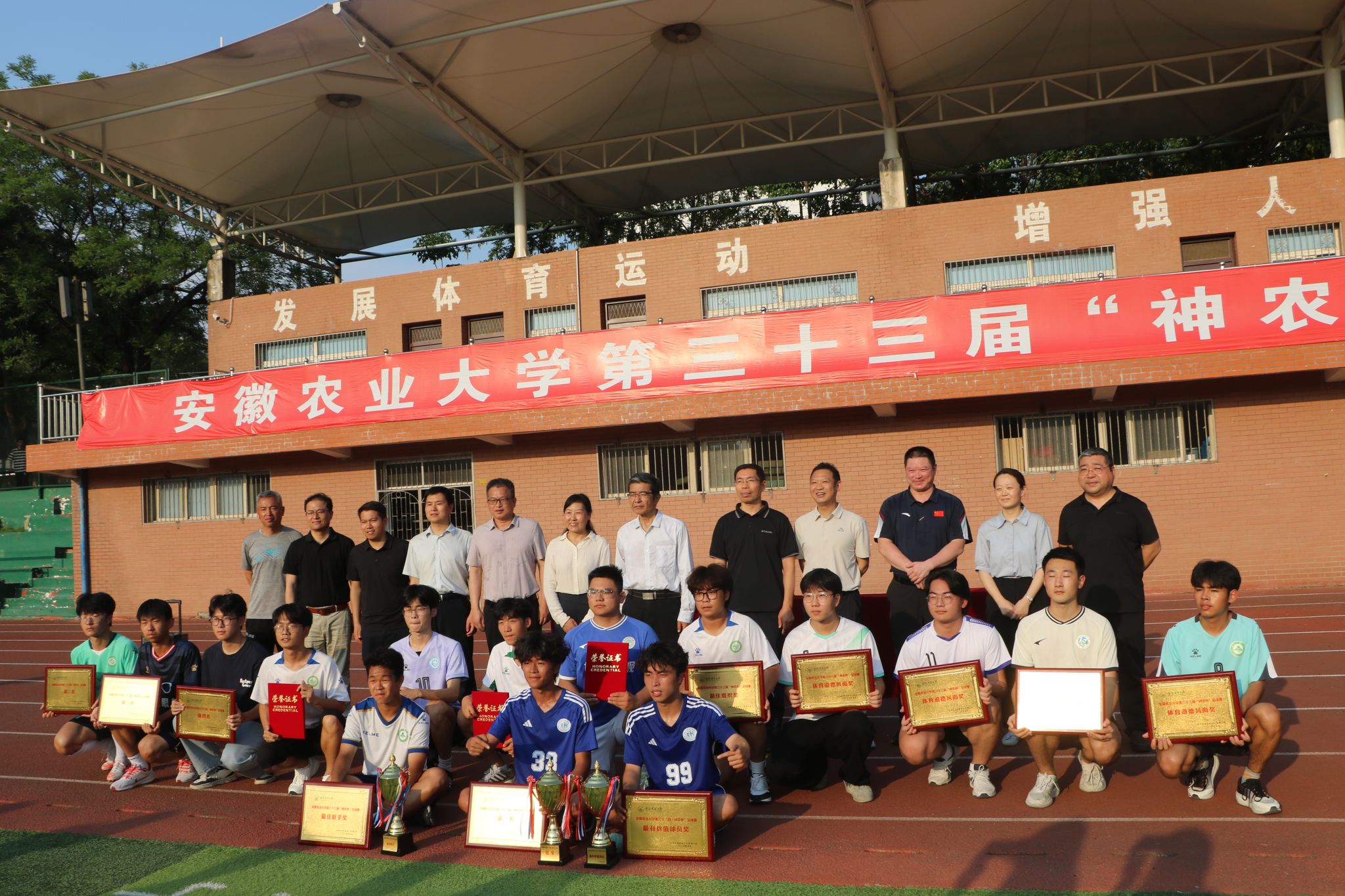 本网讯 5月21日下午,安徽农业大学第三十三届“神农杯”足球赛在第一运动场圆满落幕。校党委副书记董雨,党委宣传部、教务处、国际合作交流处、体育部、团委等单位负责人出席闭幕式并为获奖单位和个人颁奖。