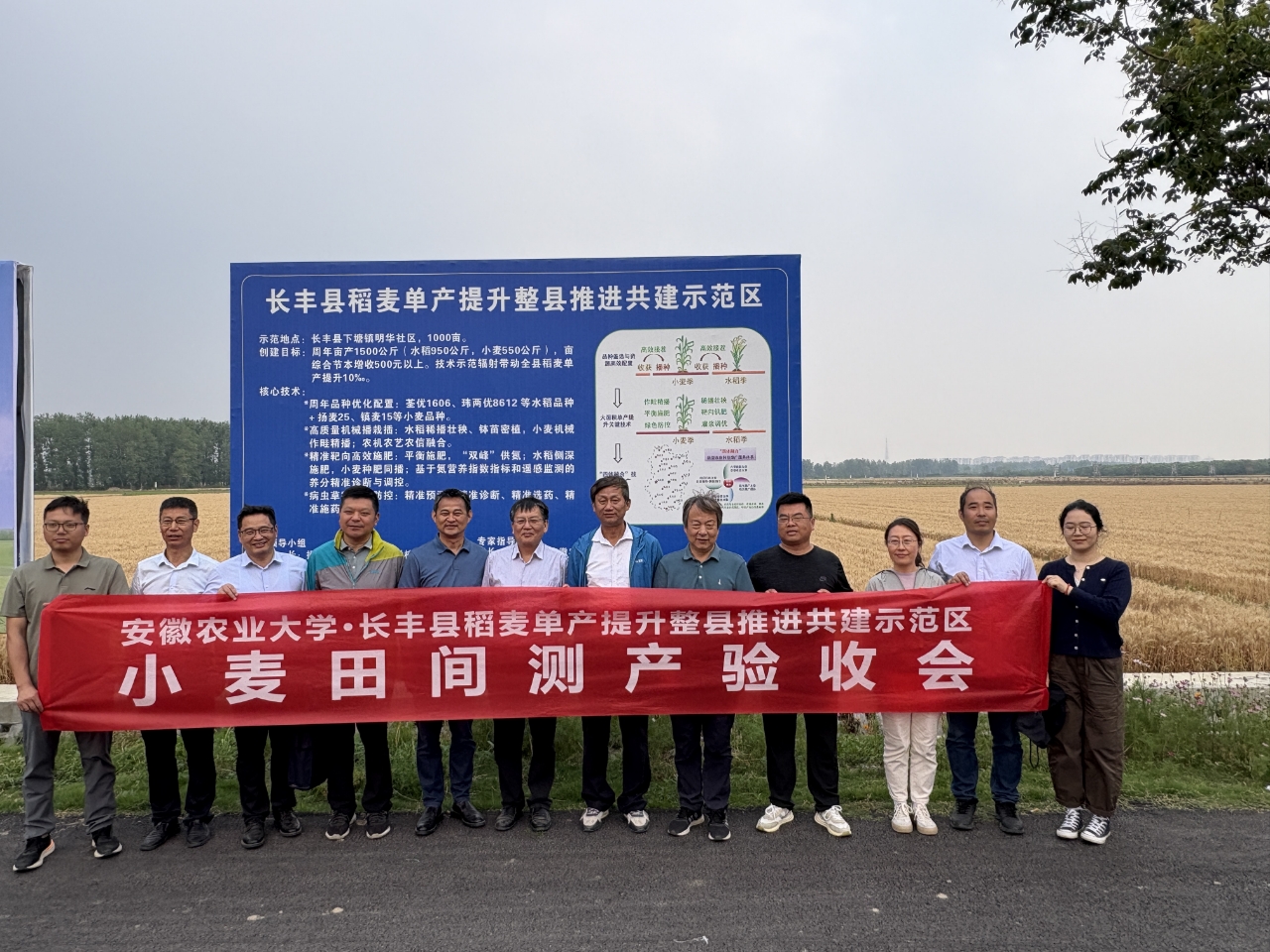 专家组认为,尽管今年小麦生产遭受冬春干旱、干热风、倒春寒等不利气候影响,但我校专家技术团队联合地方推广团队,通过优选高产稳产小麦新品种,采用高质量机械条播、测土配方精确施肥、病虫害草绿色防控、一喷多促防灾减灾等绿色高产高效技术模式,实施良田、良种、良机、良法配套,示范区小麦长势均衡、群体适宜、熟相好,显著优于非示范区。