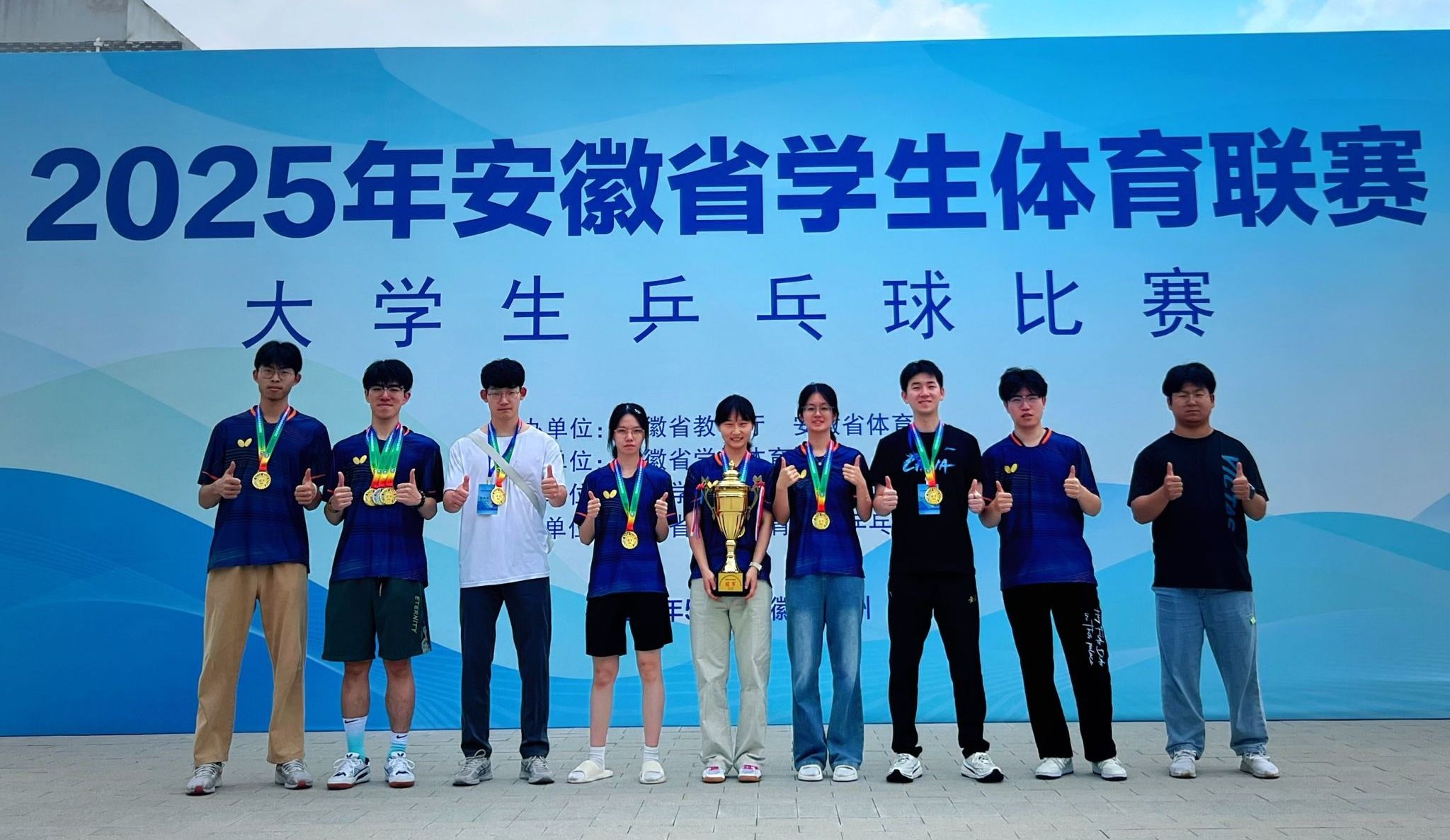本网讯 5月29日,2025年安徽省学生体育联赛大学生乒乓球比赛在宿州职业技术学院落下帷幕,本次比赛共有来自全省59所高校的近500名运动员参加。经过八天的激烈角逐,我校获得3金1银的甲组高校最佳成绩。