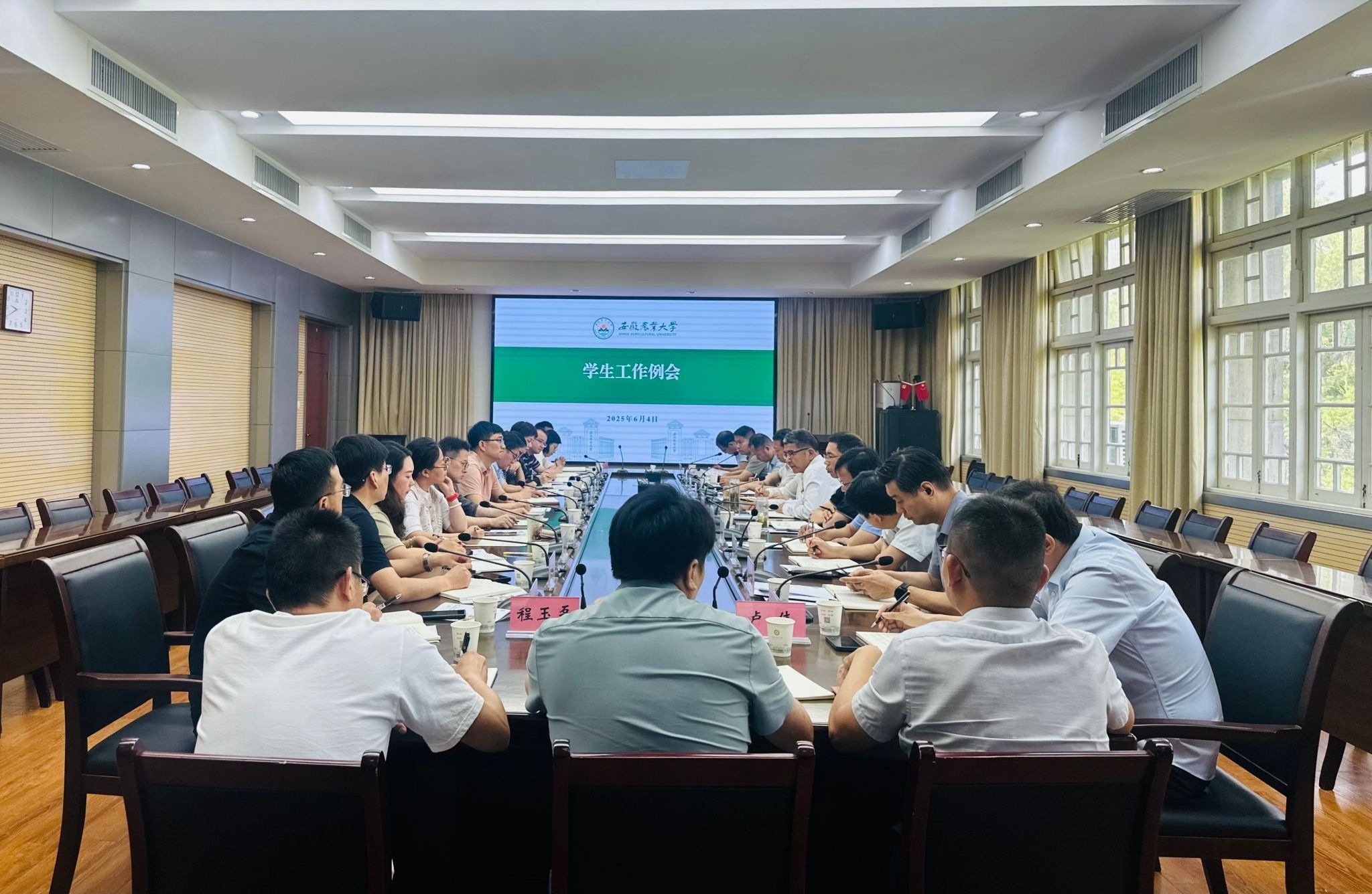 本网讯 6月4日上午,我校在第三会议室召开学生工作例会。党委副书记董雨出席会议。宣传部、教务处、学工部(处)、研工部、国合处、总务部、保卫处、团委等单位负责人,各学院学生工作负责人参加会议。