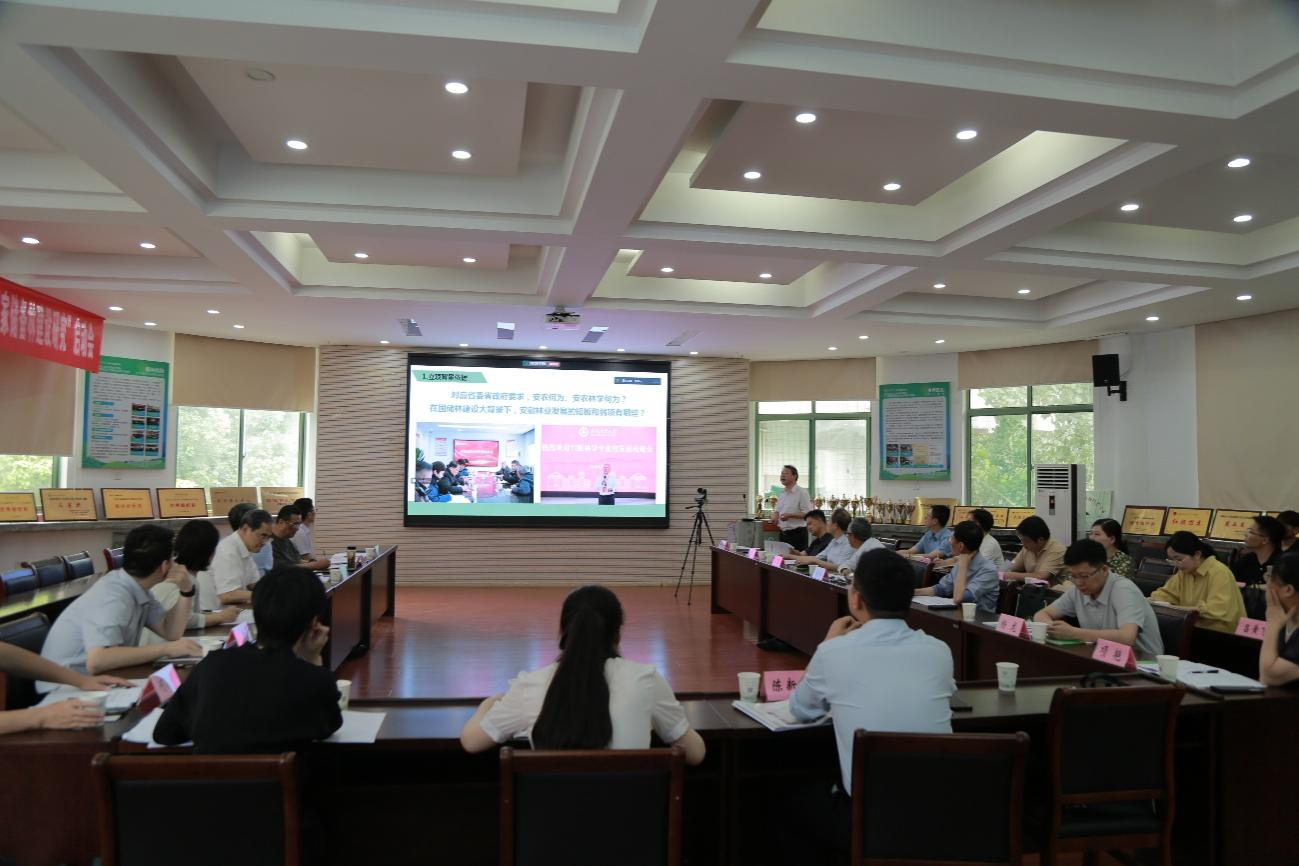 会上,林学与园林学院负责同志汇报了项目背景、项目内容、课题设置、已完成工作及下一步工作重点等内容。与会院士专家针对江淮分水岭脆弱生态区的治理策略以及国家储备林建设研究展开了深入论证,就如何提升项目成效提出了建设性意见和建议。
