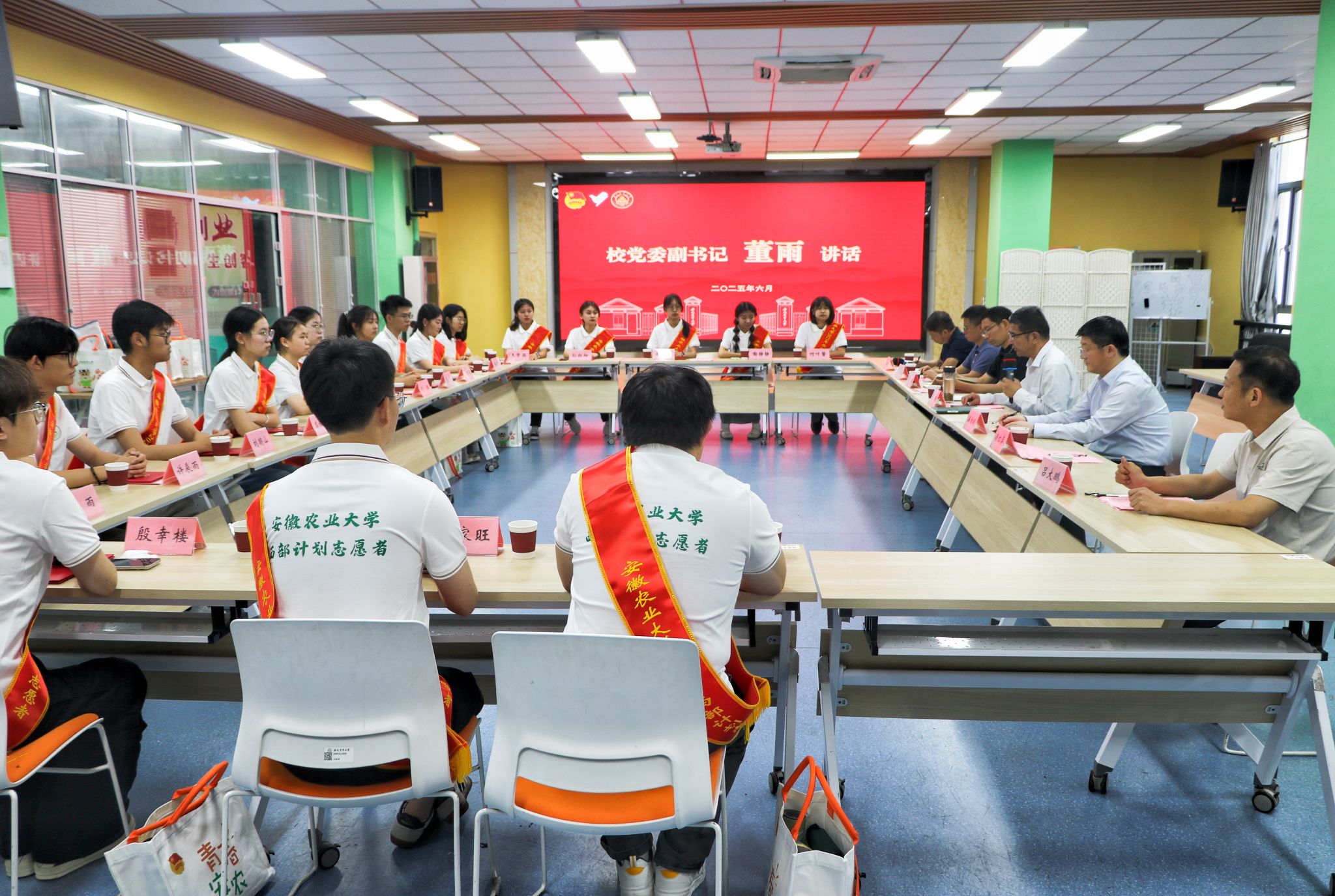 董雨在讲话中对青年学子们将个人理想融入国家需要的责任担当给予高度评价,他寄语同学们,要永葆赤诚初心,筑牢信仰之基,深刻认识新时代青年肩负的历史使命,传承安农“三牛精神”;要练就过硬本领,厚植为民情怀,坚持在基层实践中拓宽视野、增长才干,用专业所长服务乡村振兴;要发扬实干精神,勇担时代重任,在支教帮扶、服务三农的具体工作中找准人生坐标,以实干实绩展现新时代青年的精神风貌;要严守纪律规矩,锤炼品德修为,自觉加强党性修养。