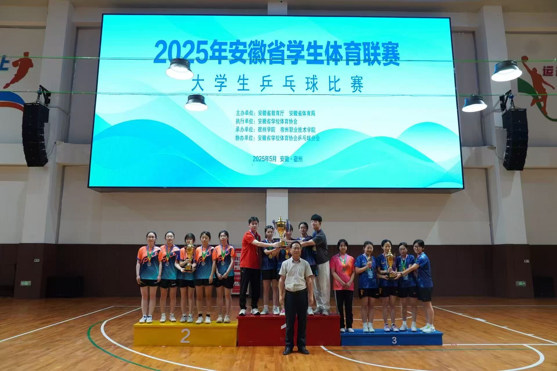 校乒乓球队在省大学生乒乓球比赛中创历史最佳战绩。比赛赛场之上,我校队员们顽强拼搏,团结一心,在多场比赛中以弱胜强,最终获得女子团体、混合双打、男子双打3枚金牌,并斩获男子单打银牌、男子团体第四名、混合双打第八名的优异成绩,获得金牌数全省高校第一。同时本次赛事创造了我校乒乓球队参赛成绩历史最好纪录。