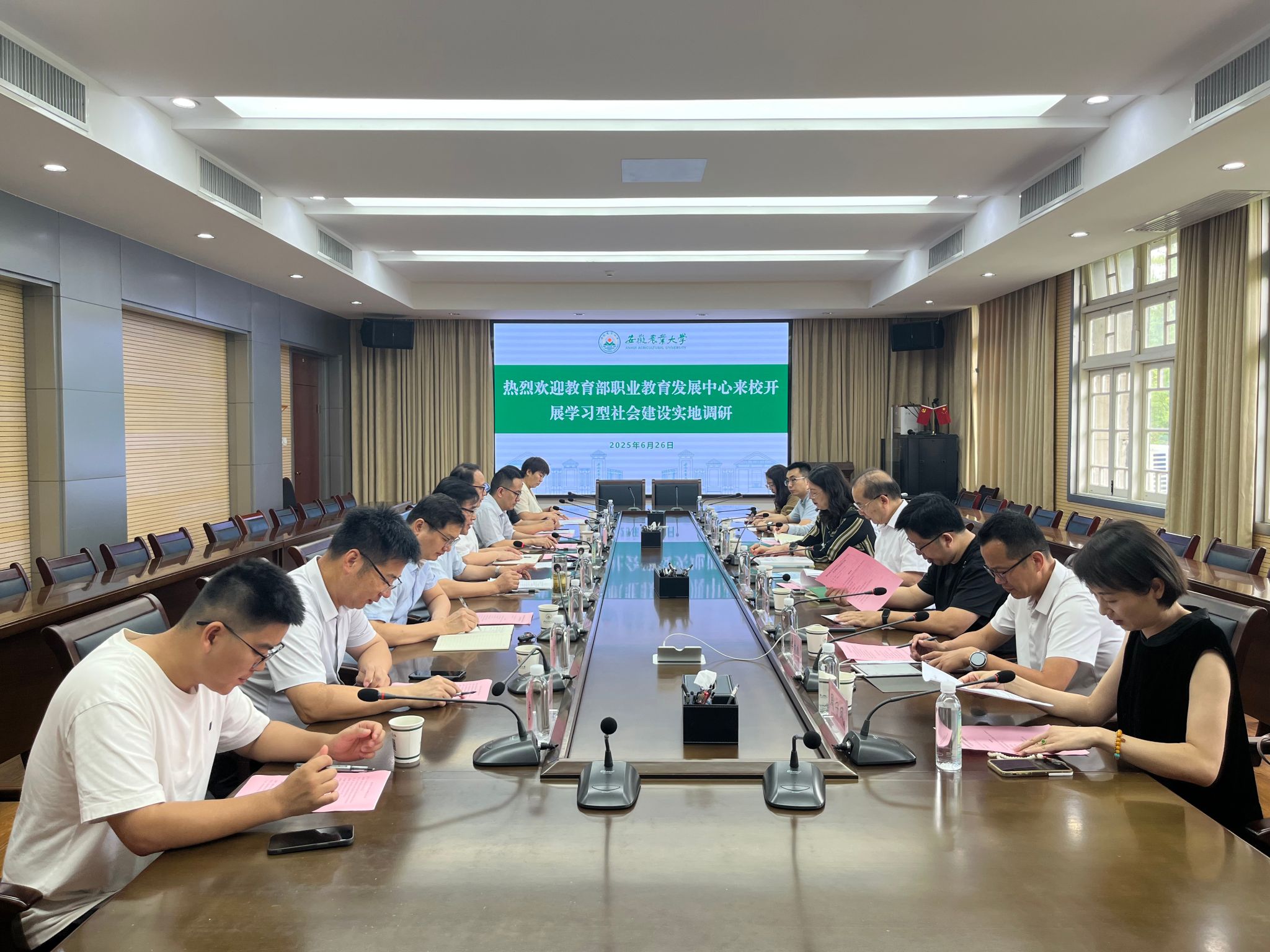 本网讯 6月26日上午,教育部学习型社会建设继续教育重点任务实地调研组组长、青岛职业技术学院校长邢广陆,教育部职业教育发展中心职业继续教育处副处长李树峰等一行7人来校,就我校承担的重点任务《乡村产业带头人“头雁”培育模式创新与实践》开展调研。校党委常委、副校长陈黎卿出席活动。乡村振兴学院、继续教育学院负责同志,乡村产业振兴带头人“头雁”项目学员代表等参加调研活动。