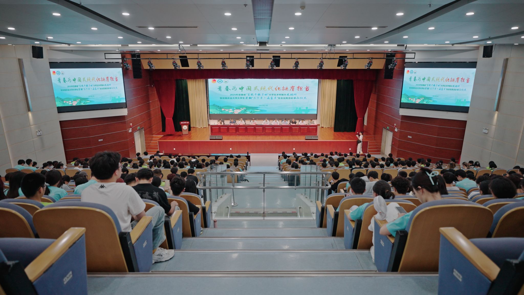 本网讯 7月3日上午,安徽省“百校千镇万村”大学生乡村振兴大调研暨大学生暑期“三下乡·返家乡”社会实践活动出征仪式在我校图书馆第一报告厅举行。校党委副书记董雨出席活动并讲话。校党委组织部、宣传部、教务处、研工部、学工部、社合处、团委、马克思主义学院、乡村振兴学院等单位负责同志,各学院分管学生工作副书记、团委负责人,暑期“三下乡·返家乡”社会实践及参与大调研活动指导老师和成员代表参加活动。