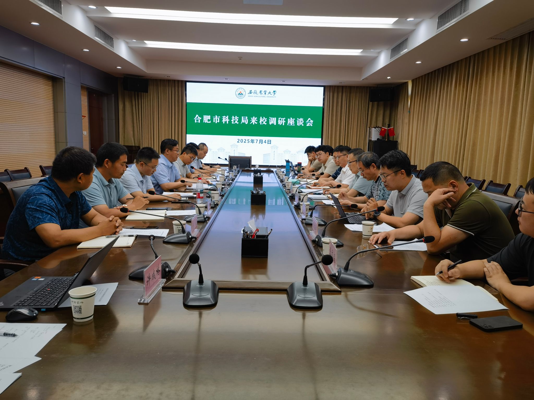 江海洋对合肥市科技局一行来访表示欢迎,并介绍了学校在科技创新和成果转化方面的成果与实践。他强调,促进科技成果转化是加快建设农工商融合发展的特色高水平大学的重要引擎,希望与合肥市科技局深化合作,共同推动各项支持政策精准落地、高效实施,共谋创新转化发展路径。