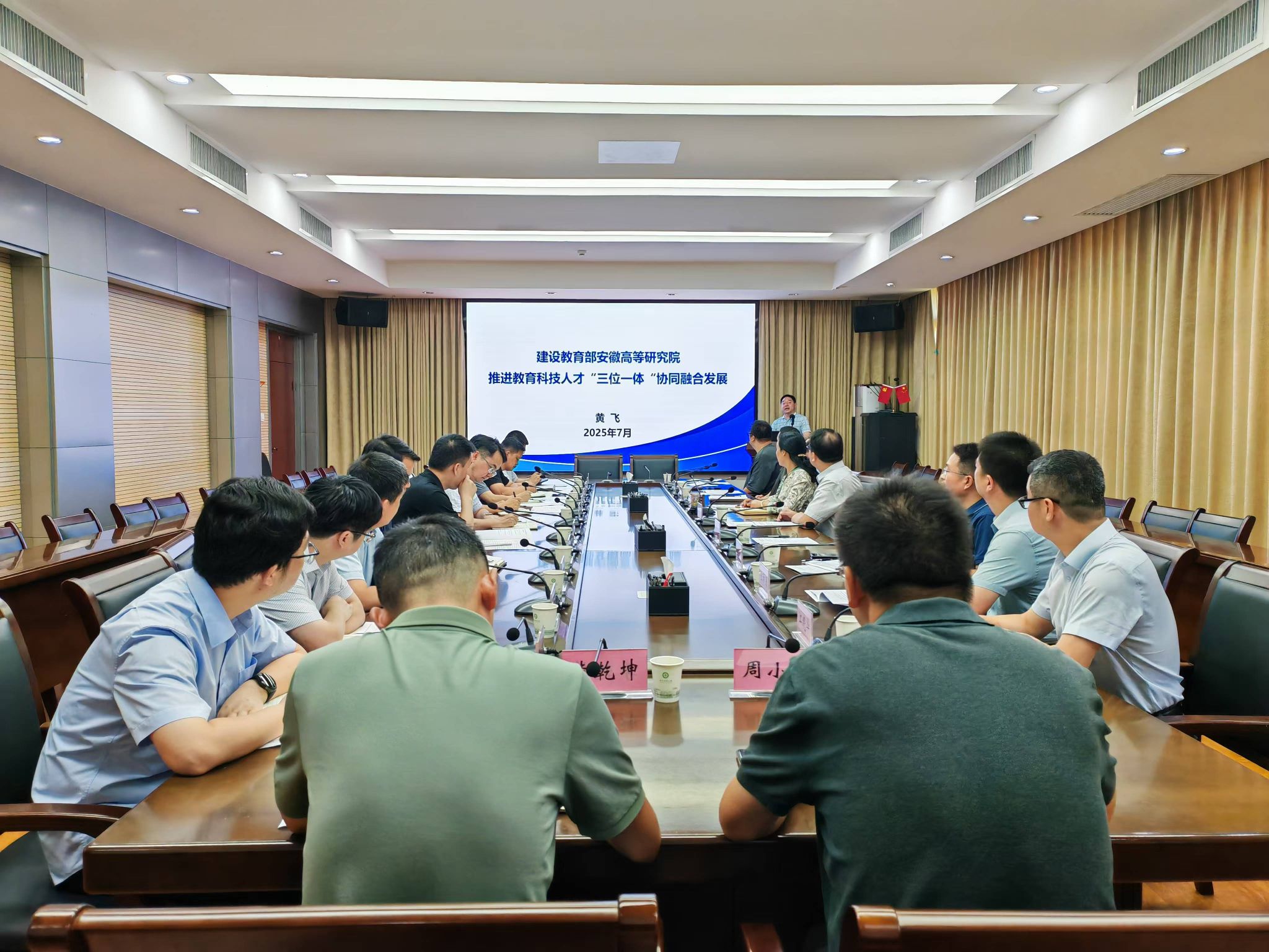 本网讯 7月7日上午,学校在第三会议室召开教育部安徽高等研究院人才项目推进会,校党委常委、副校长陈黎卿出席会议。会议邀请教育部安徽高等研究院筹建工作组成员、合肥工业大学研究生院副院长黄飞开展专题培训。校党委研究生工作部、社会合作处以及各学院分管科研工作负责同志参加会议。