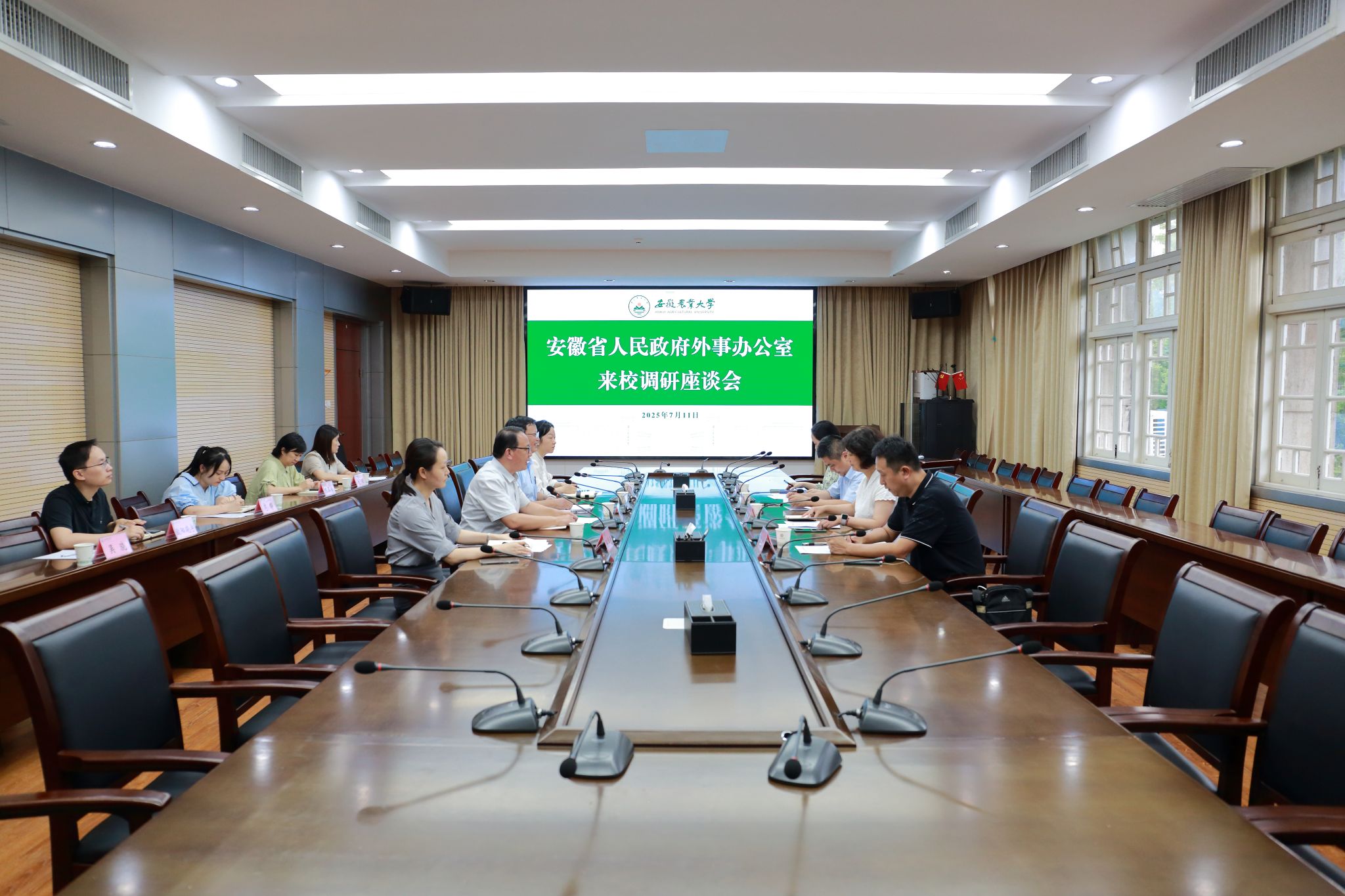 本网讯 7月11日,安徽省人民政府外事办公室党组成员、副主任杨小琳来校专题调研我校与乌兹别克斯坦合作情况,综合处、礼宾处、经济处参加调研。校党委常委、副校长陈黎卿主持座谈会。