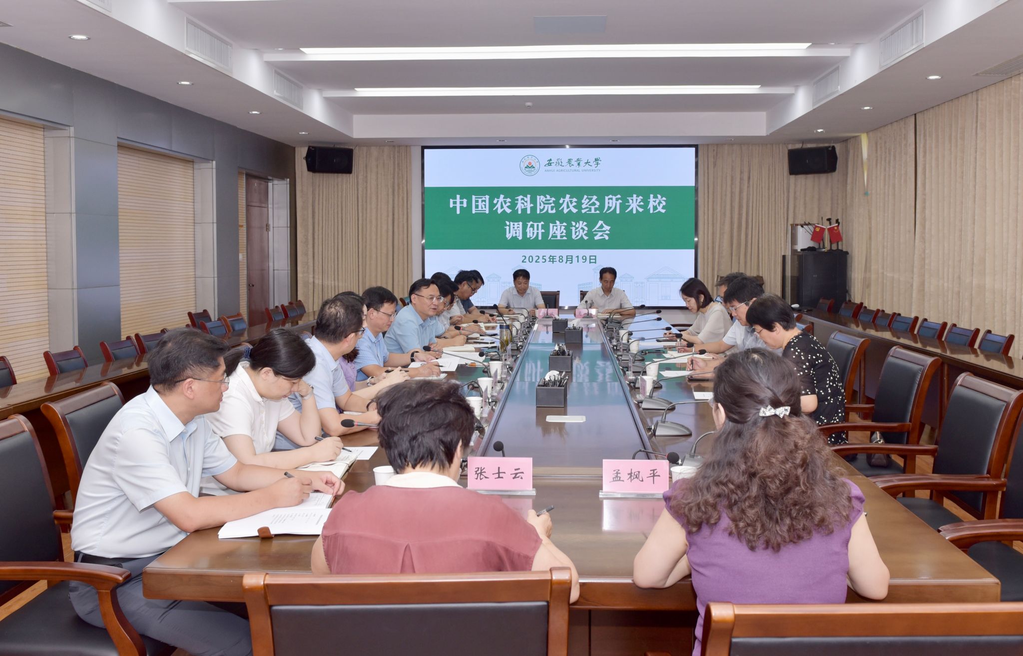 本网讯 8月19日,中国农业科学院农业经济与发展研究所所长胡向东一行来校调研。党委副书记、校长操海群出席座谈会。会议由党委常委、副校长吴祥为主持。