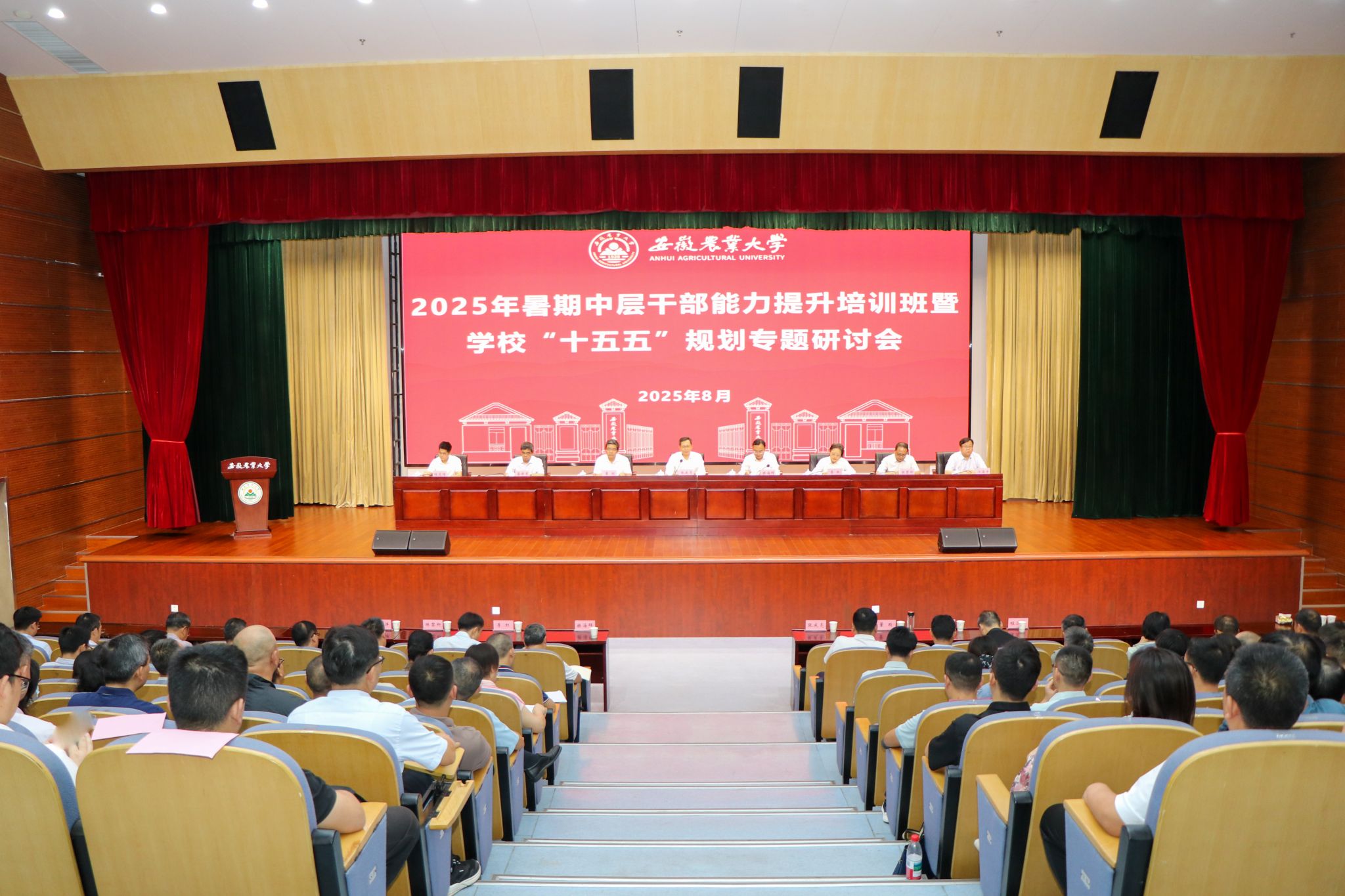 校领导操海群、董雨、李红、吴祥为、蔡德军、陈黎卿、程道传、江海洋,学术副校长董大明、吴文革,结合分管工作,分别作《学科建设及“双一流”创建》《学生素质发展与生涯教育》《探索优化国有资产管理与采购招标》《深化科技人才评价改革 激发教师发展内生动力》《学校办学资源优化配置与服务保障能力提升》《研究生教育与国际化》《作风建设与廉政风险防控》《拔尖创新人才培养思考与探索》《智慧农业学科前沿动态与“十五五”战略发展分析》《为高水平建设江淮粮仓贡献安农力量》专题辅导报告。