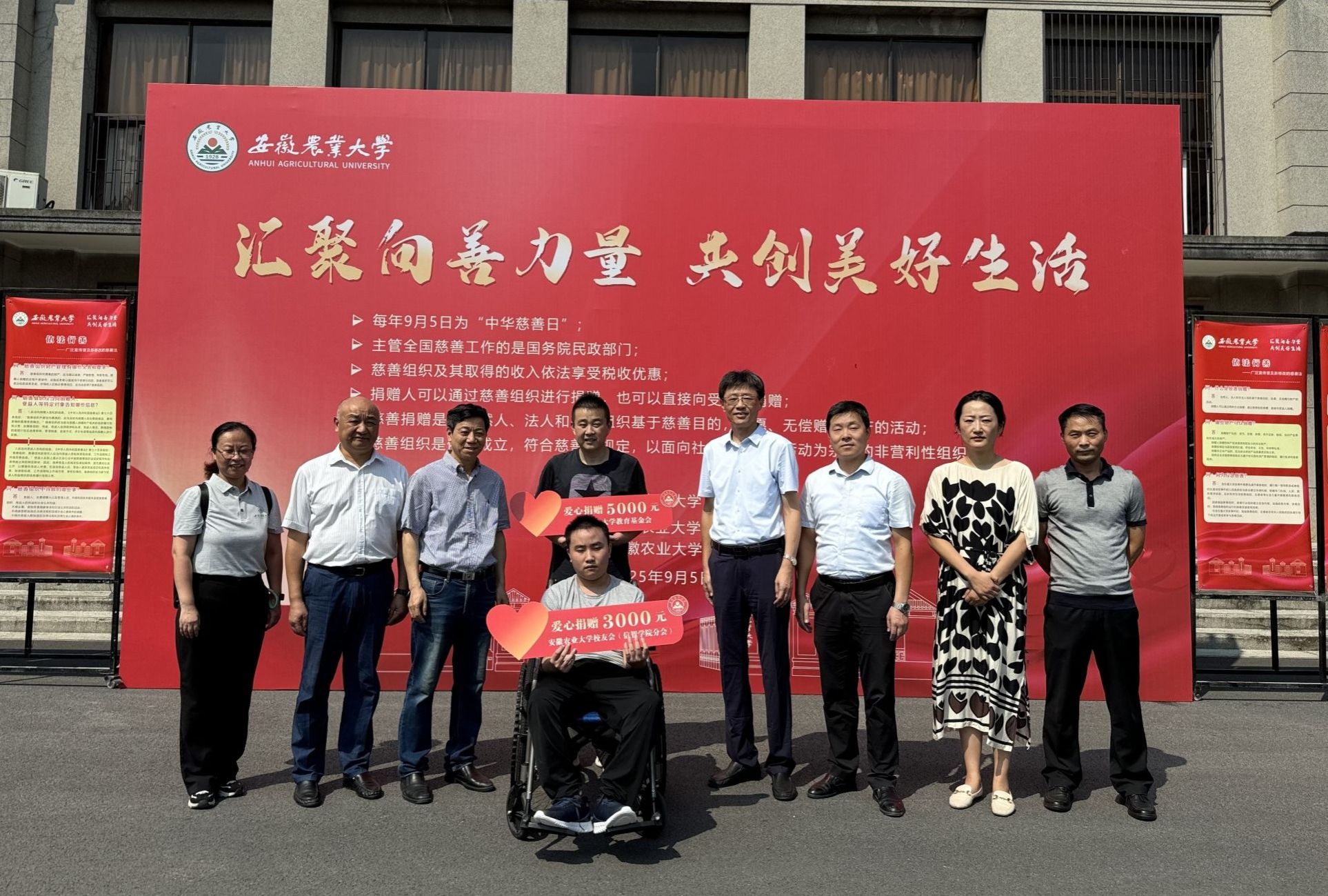本网讯 9月5日,正值我国第十个“中华慈善日”,我校教育基金会、校友会联合校团委组织开展了以“汇聚向善力量 共创美好生活”为主题的慈善文化宣传活动。校教育基金会理事长裴树东、校友会副会长韩军以及校友会、信息与人工智能学院相关负责同志参加活动。