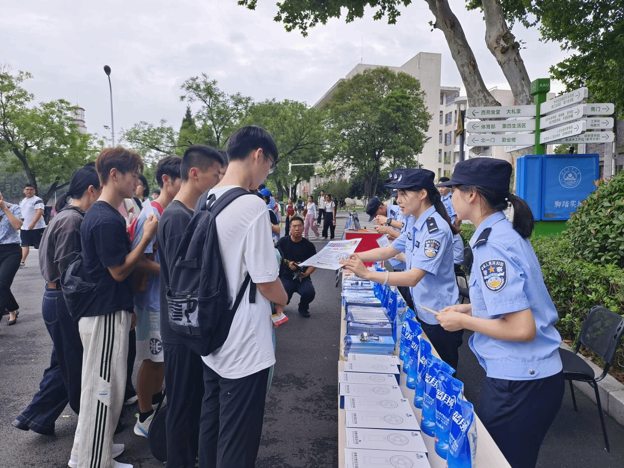 本网讯 9月11日,学校联合合肥市蜀山区公安分局、琥珀派出所在大礼堂广场组织开展“开学第一课 反诈进校园”主题宣传教育活动。校党委常委、副校长蔡德军,合肥市公安局蜀山分局党委委员、副局长王培东到场指导并与师生深入交流。
