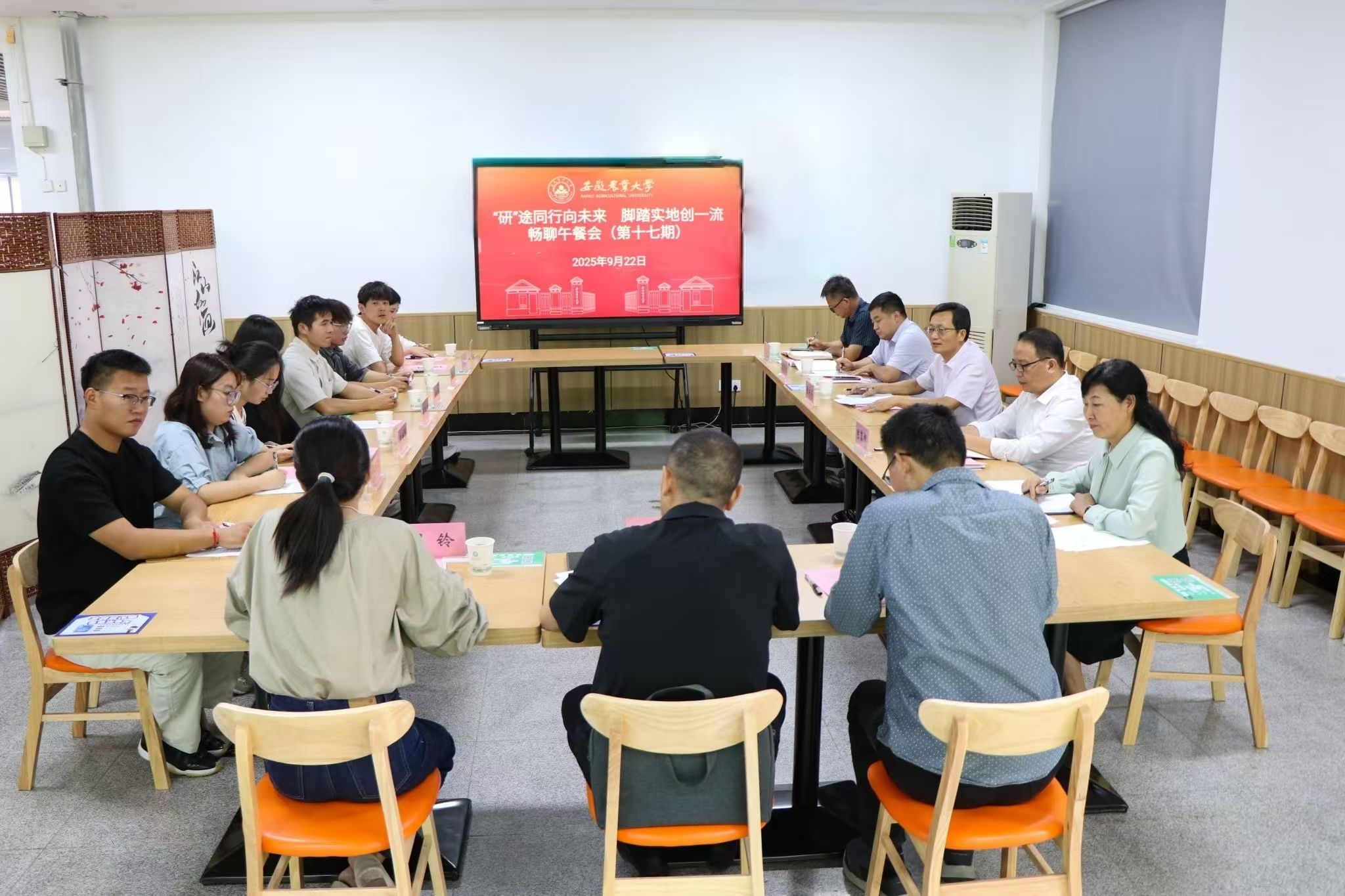 本网讯 9月22日中午,学校第17期“畅聊午餐会”在九华山路校区佰家伴餐厅举办。校党委书记张庆亮,党委常委、副校长陈黎卿与2025级研究生代表共话校区建设与成长成才,为大家的“研”途之路答疑解惑、指明方向。