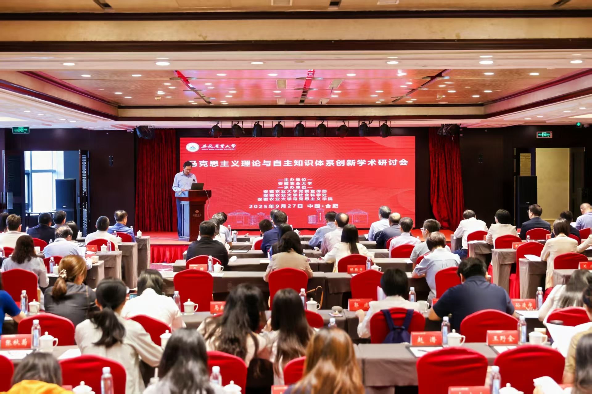 本网讯 9月27日,由我校主办的“马克思主义理论与自主知识体系创新学术研讨会”在合肥举行。安徽省社科联党组书记、常务副主席李兵,校党委书记张庆亮出席会议。来自北京大学、同济大学、华中科技大学、华中师范大学、湘潭大学等全国20余所高校、学术期刊的150余位专家学者和师生代表参会。