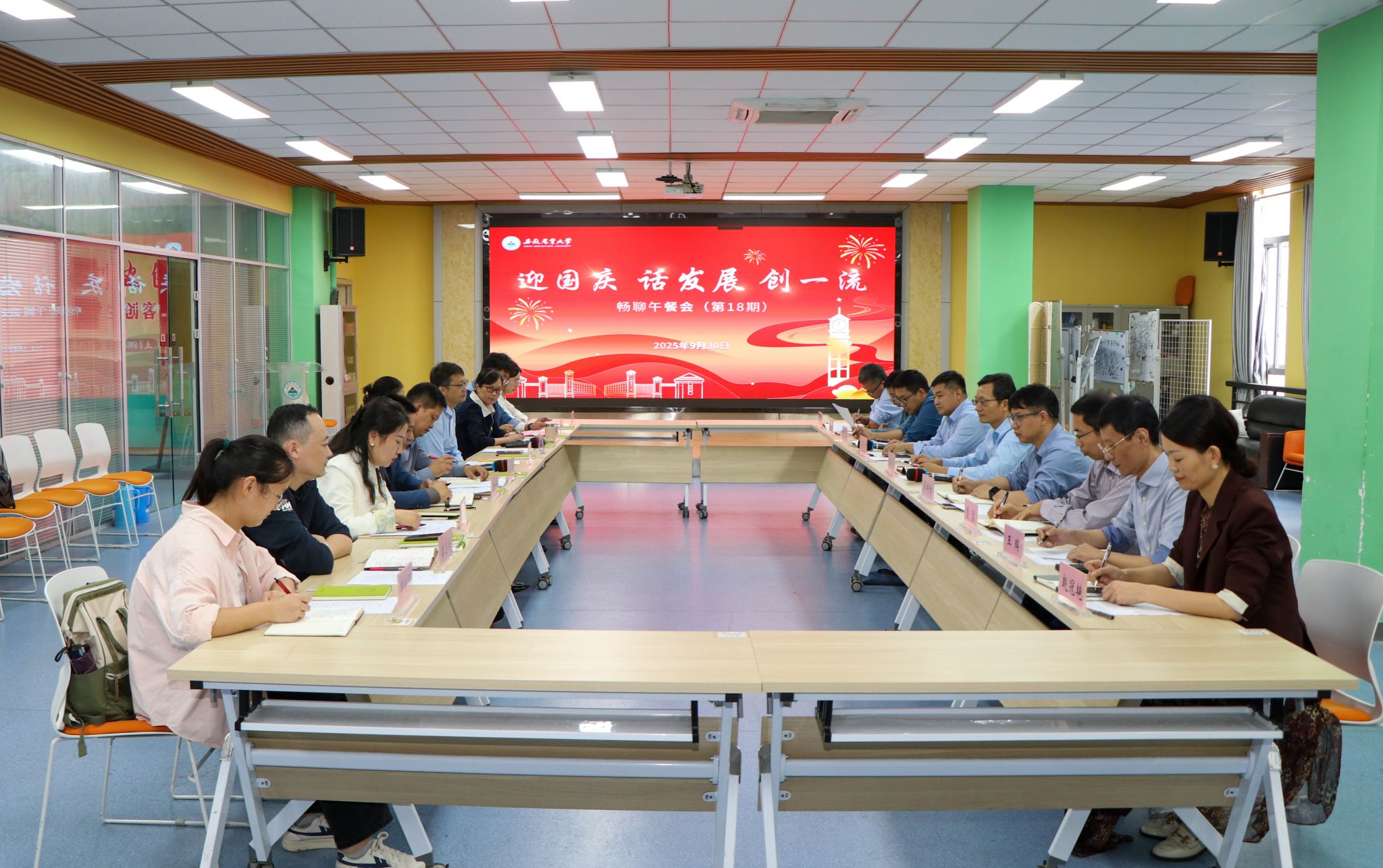 本网讯 9月30日中午,我校举办第18期畅聊午餐会,校领导、相关部门负责人与民主党派、高层次人才、教师、辅导员、学生代表等共迎国庆、共话发展。