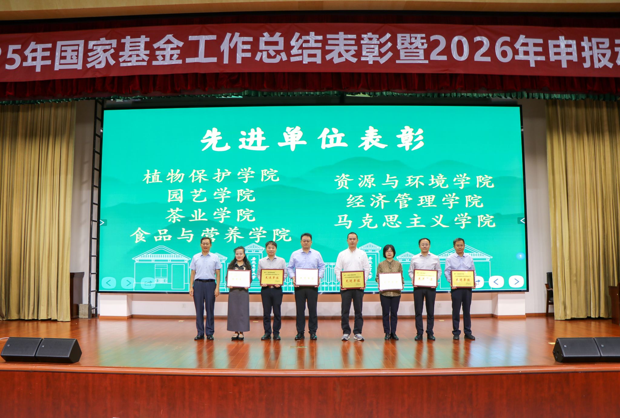 会上,学校对2025年国家基金工作先进单位进行表彰。资源与环境学院、马克思主义学院负责同志做经验交流发言,教师代表分享了从坚持申报到成功获批的奋斗历程与心路感悟,为参会教师提供了鲜活经验与精神激励。