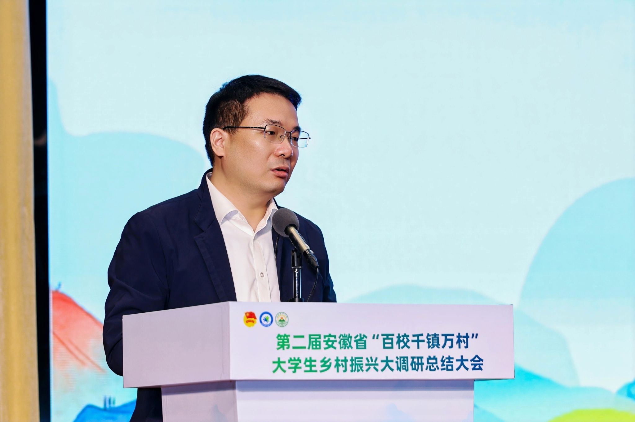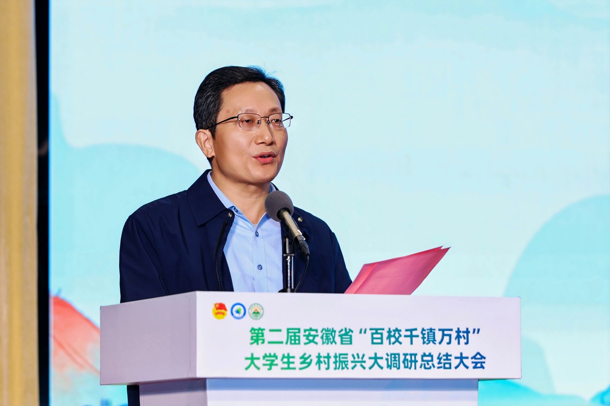 张庆亮在致辞中指出,大学生乡村振兴大调研是一堂生动的“大思政课”。时值学校践行“大别山道路”40周年,学校将坚守立德树人初心,勇担强农兴农使命,传承弘扬“大别山道路”精神,依托“1+5”农业科技创新联盟等平台,为全面推进乡村振兴提供坚实支撑。他勉励青年学子深入学习贯彻习近平总书记关于“三农”工作的重要论述,厚植爱农情怀,练就兴农本领,为加快建设农业强省、谱写中国式现代化安徽篇章贡献智慧与力量。