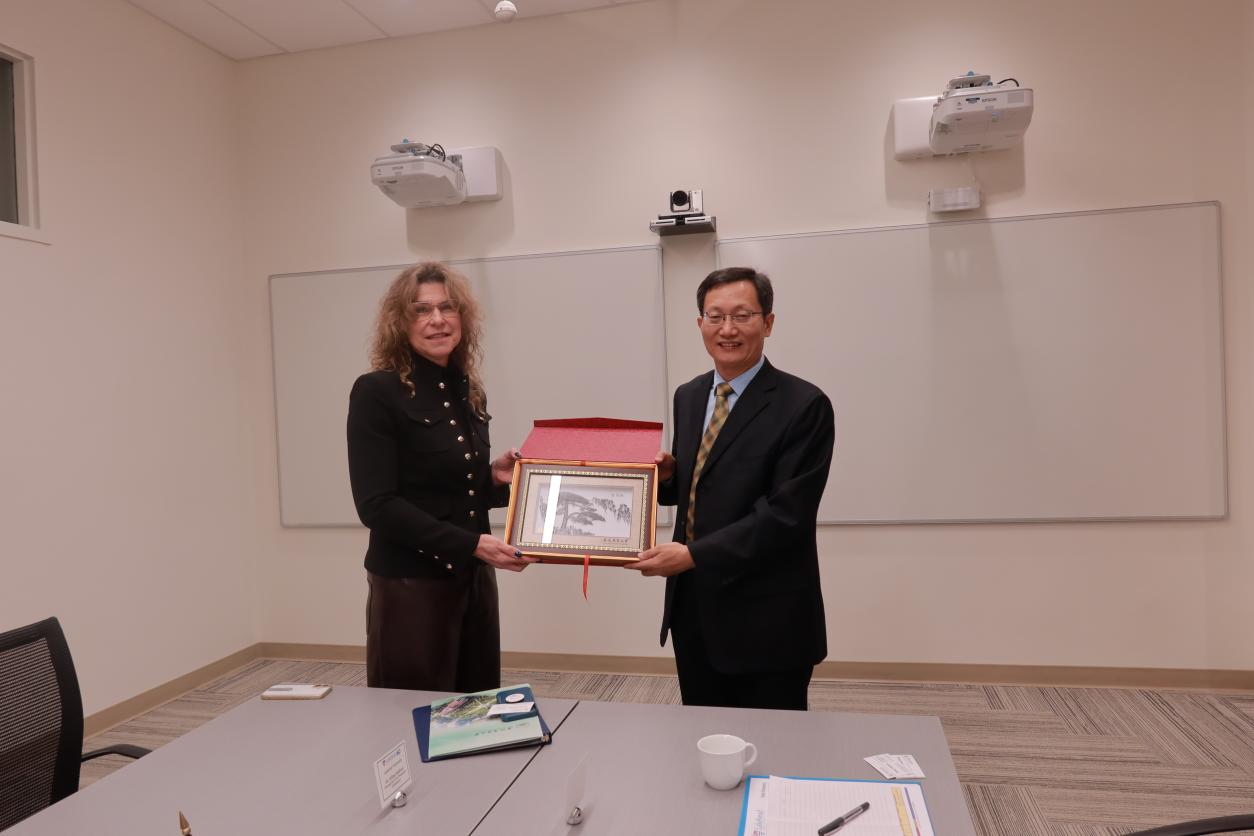 在加拿大湖首大学,代表团与该校学术副校长吉莉安·鲍尔弗、国际事务部、语言中心和自然资源管理学院相关负责人进行了深入座谈交流。双方对林学专业“3+1项目”学生培养、课程建设、师生交流所取得的成绩进行了回顾和总结,就下一步扩大合作专业领域、中短期师生交流、本硕连读、博士生联培等进行了友好而务实的交流,达成了共识。会谈后,代表团一行看望了在该校学习的我校学生。