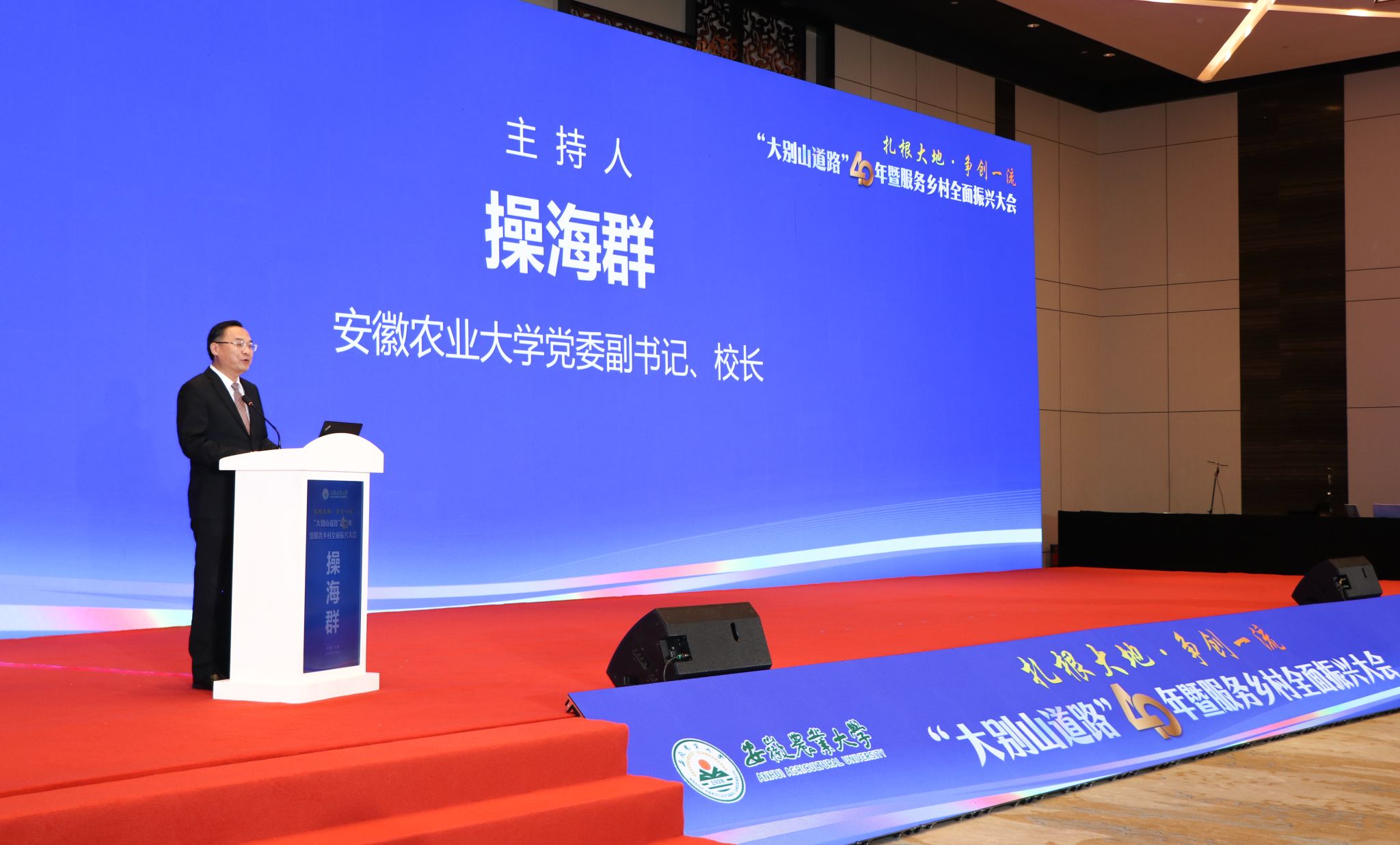 党委副书记、校长操海群主持开幕式,他指出,“大别山道路”40年,是学校矢志强农报国、主动担当作为的40年,是敞开大门办教育、扎根一线作贡献的40年,是探索高质量发展特色路径、推动教育科技人才一体发展的40年。学校将以此次活动为契机,打造“大别山道路”4.0,更好地凝聚力量,鼓足干劲,扎根江淮大地,争创一流大学,努力为服务乡村振兴和高水平江淮粮仓建设作出新的更大贡献。