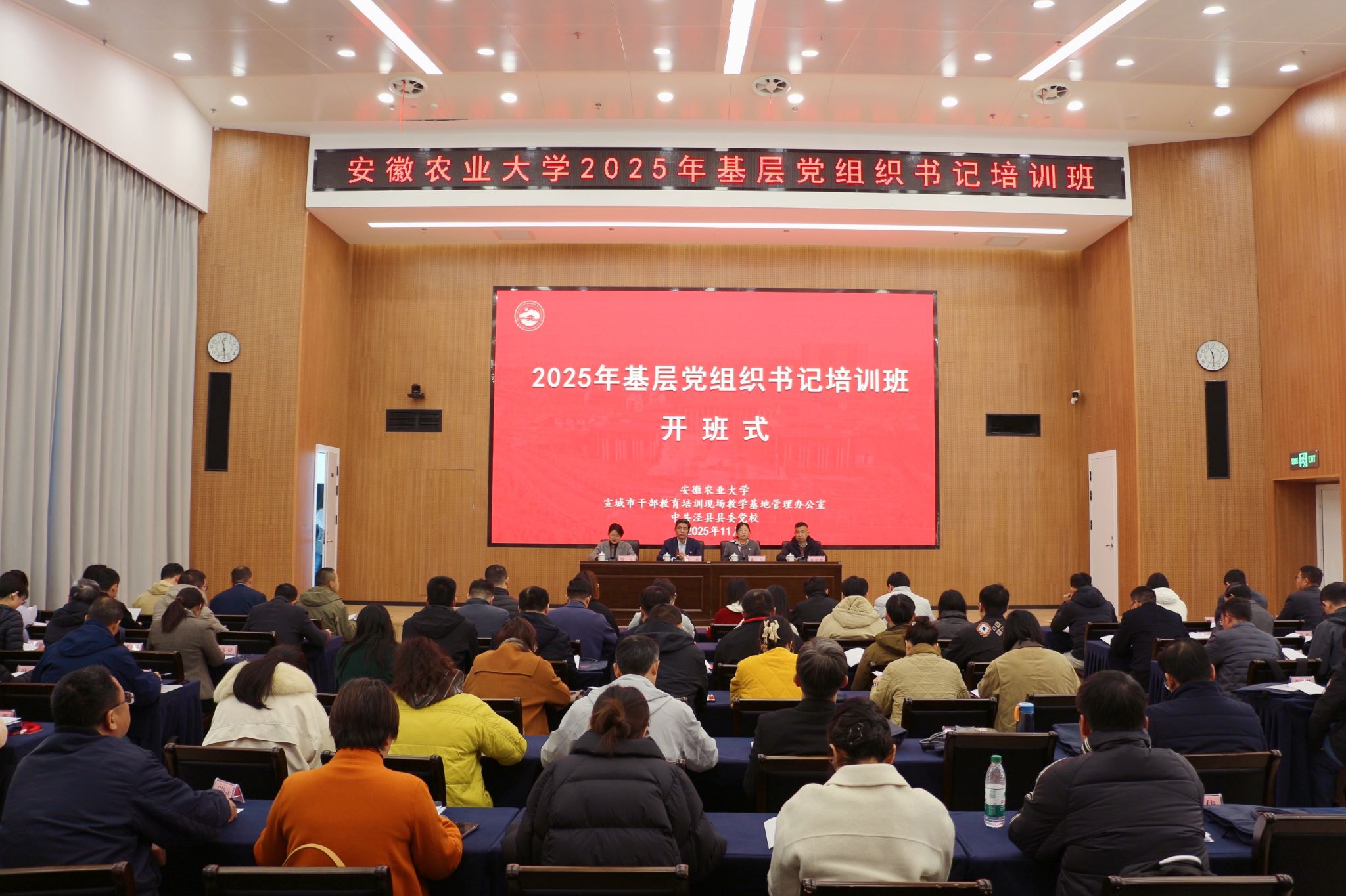 本网讯 为深入学习贯彻党的二十届四中全会精神,进一步加强基层党组织建设,11月20日至22日,学校在泾县县委党校、繁昌创新港举办2025年基层党组织书记培训班。校党委副书记董雨出席开班式并作动员讲话。各二级党组织书记、副书记、党支部书记、处级组织员等近100人参加培训。