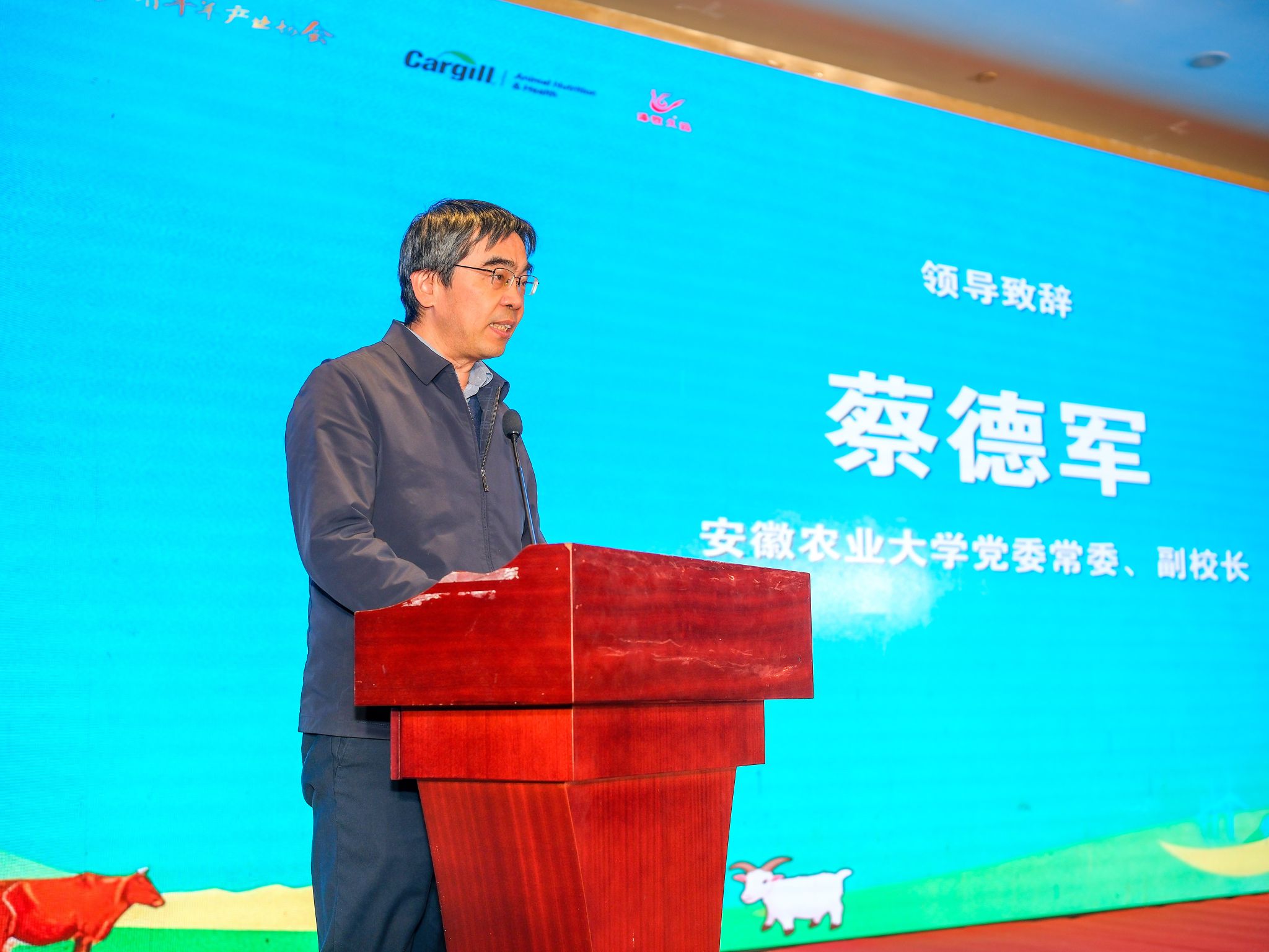 蔡德军向与会代表表示热烈欢迎,并简要介绍了学校办学历史与特色。他指出,学校始终坚持以服务区域牛羊全产业链发展为着力点,以自主创新为核心,持续强化牛羊产业战略科技支撑。他表示,学校将积极发挥长三角地区科技、人才与市场优势,深化产学研用融合,加快科技成果转化,为构建多元化食物供给体系、全面推进乡村振兴贡献安农力量。
