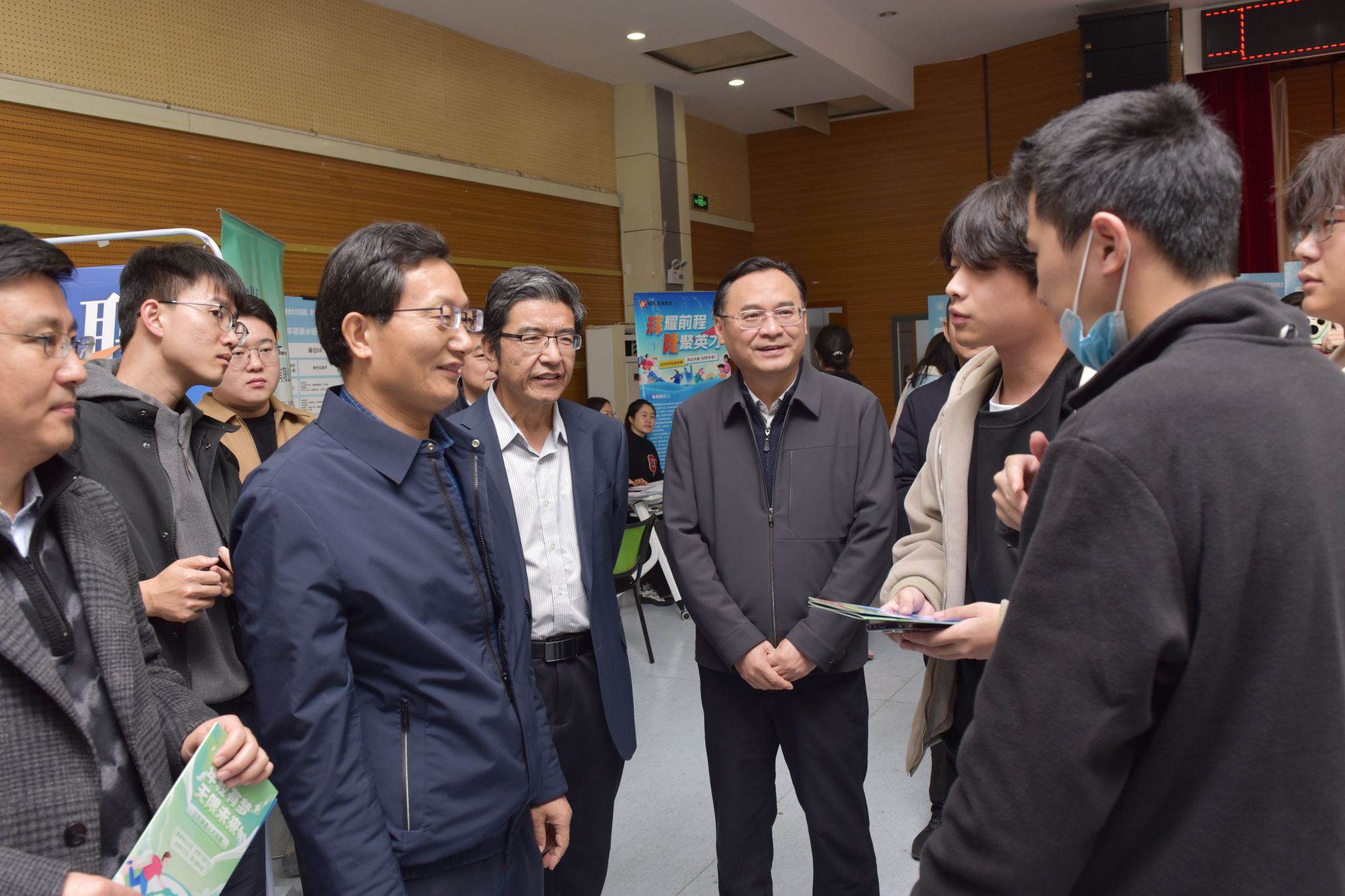 校领导一行走访各企业展位,与企业代表深入交流,详细了解企业用人需求,并就深化校企协同、拓展合作维度、推动产教融合与共赢发展进行了探讨。在校友企业展位前,张庆亮、操海群对校友取得的成就表示祝贺,感谢校友企业长期关心支持母校发展,在促进学生实习就业、助力学子成长等方面作出的积极贡献。