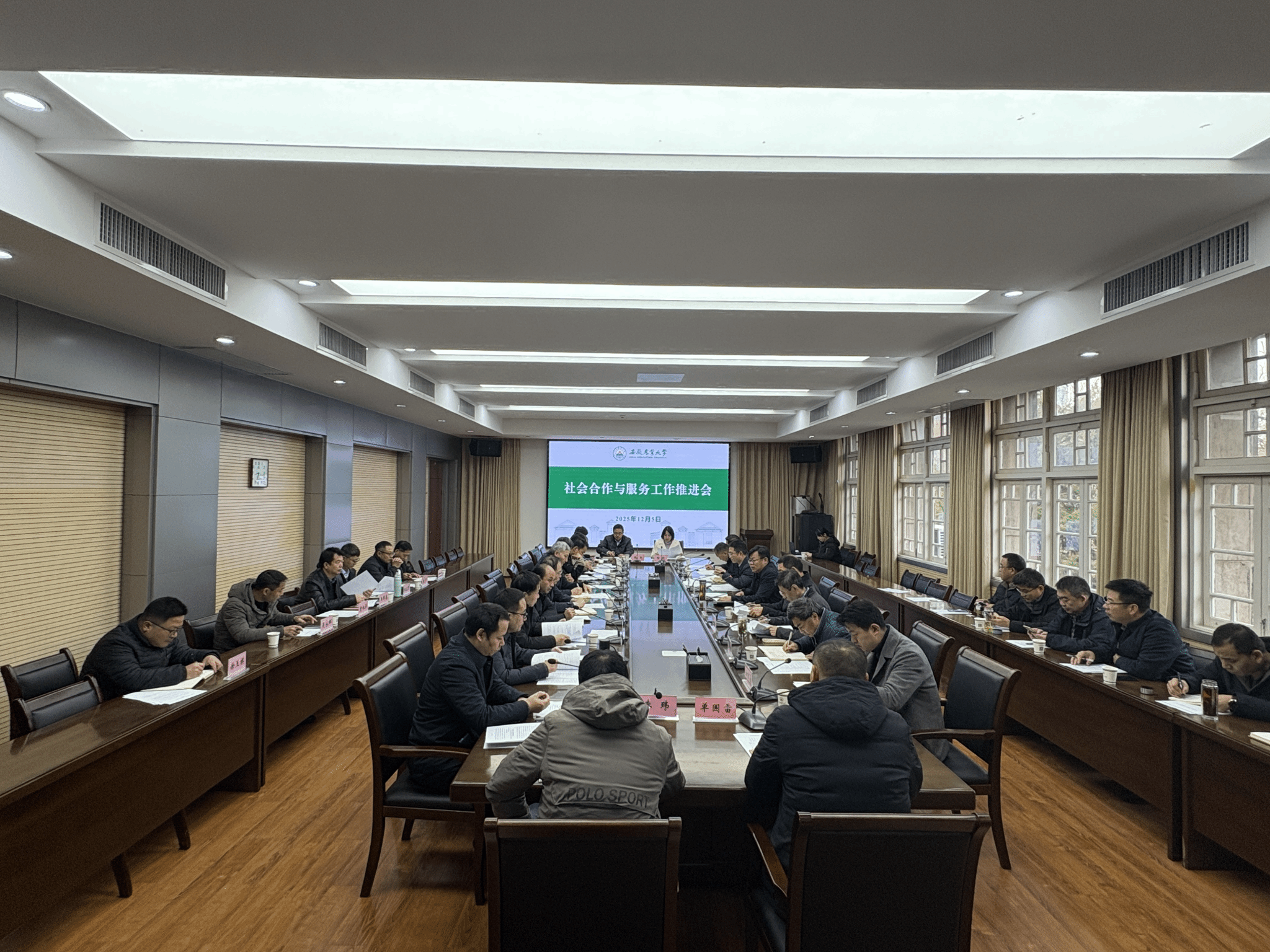 本网讯 12月5日上午,校党委常委、副校长江海洋主持召开2025年度社会合作与服务工作推进会。党委宣传部、离退休工作处、发展规划处、人事处、研究生院、科技处、社会合作处、财务处、数据管理处等单位负责人,各学院负责同志、综合试验站站长参加会议。