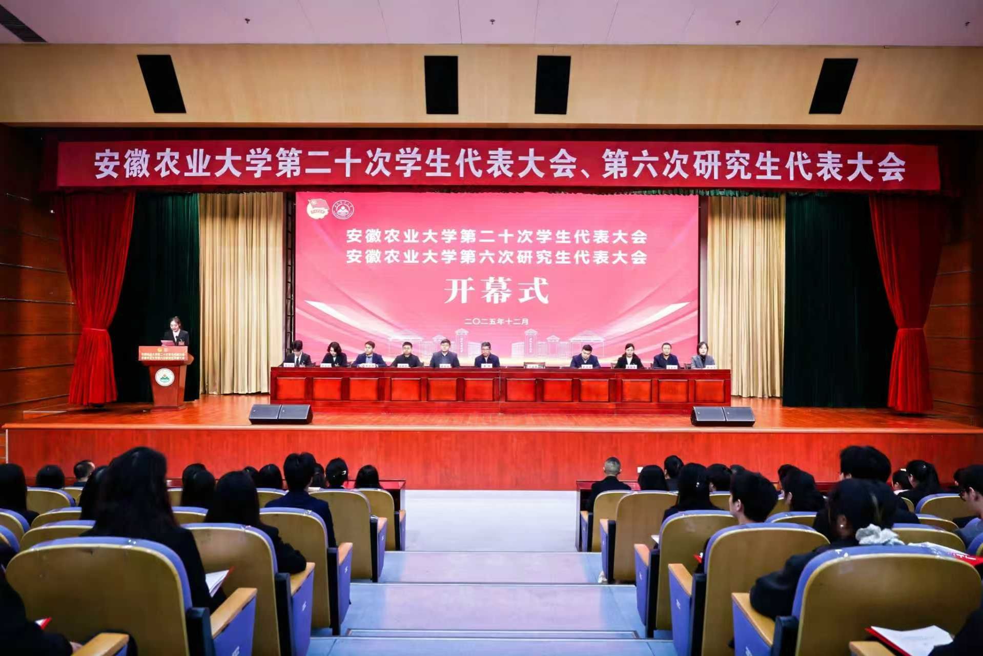 本网讯 12月5日-6日,学校第二十次学生代表大会、第六次研究生代表大会在图书馆第一报告厅召开。校党委副书记董雨,省学联驻会主席汤佳慧出席开幕式。党政办、组织部、宣传部、教务处、研工部、学工部、团委等单位负责同志,各学院学生工作负责人以及全校222名本科生代表和87名研究生代表参加会议。