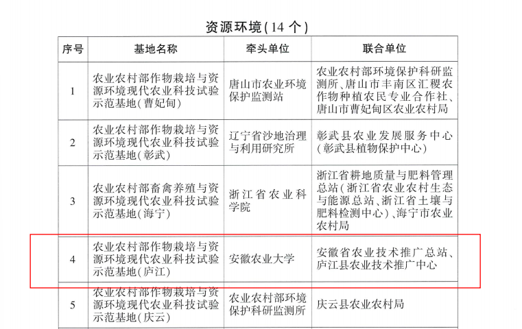 本网讯 近日,农业农村部公布了现代农业科技试验示范基地(第一批)名单,由我校牵头立项的“农业农村部作物栽培与资源环境现代农业科技试验示范基地(庐江)”(以下简称“示范基地”)成功入选。