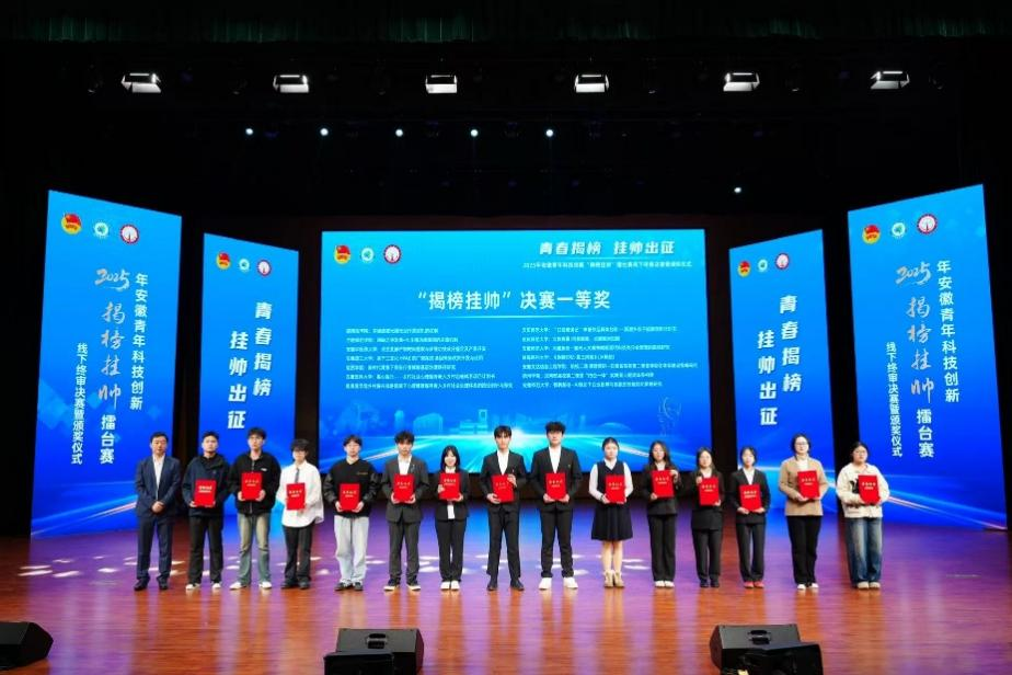 本网讯 12月7日至8日,2025年安徽青年科技创新“揭榜挂帅”擂台赛落下帷幕。经过激烈角逐,我校工学院、材料与化学学院的参赛作品获得一等奖。