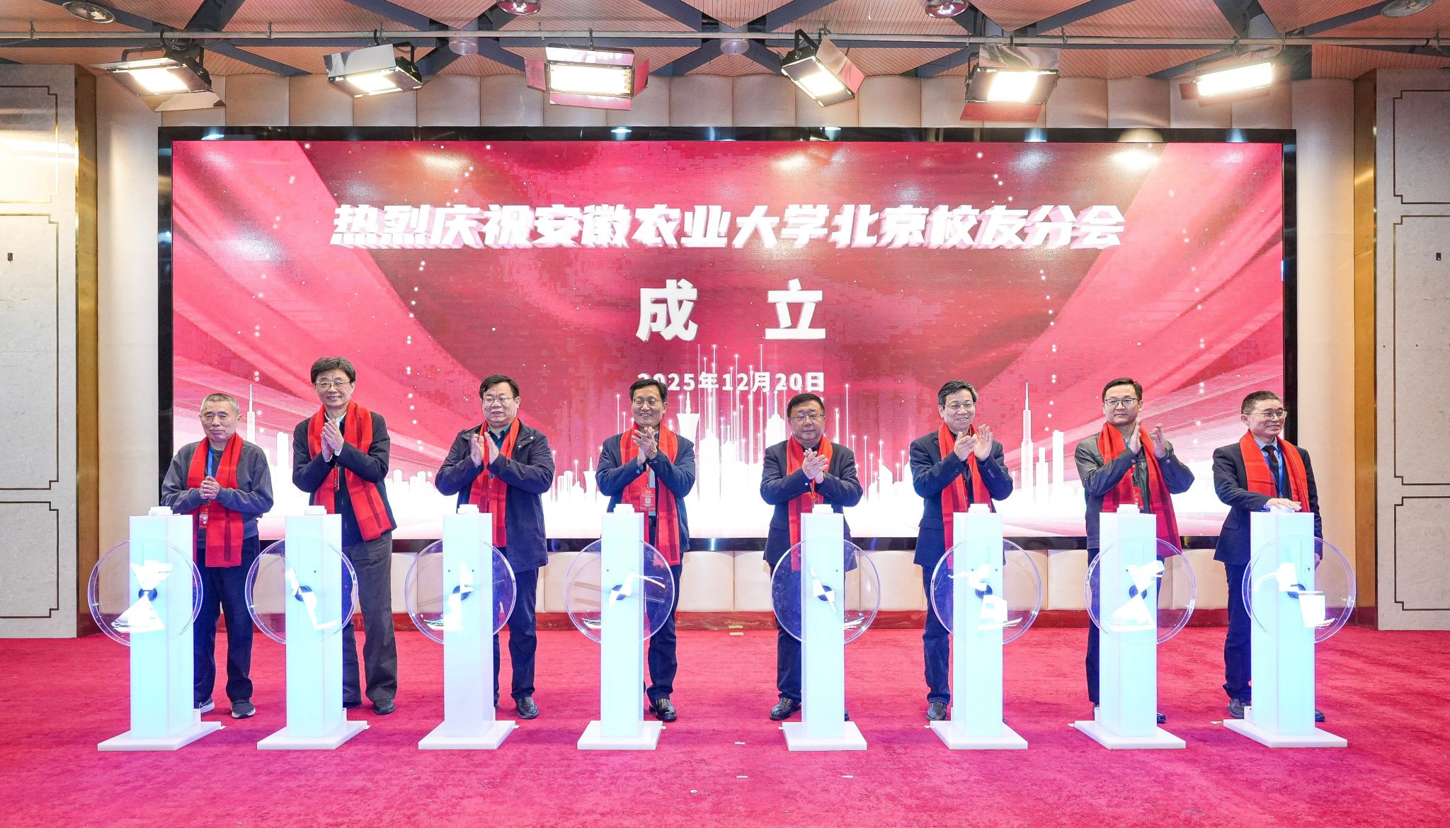 韩军宣读了《关于同意成立安徽农业大学北京校友分会的批复》。安徽省人民政府驻北京办事处联络处处长洪林、中关村人才协会秘书长冷明、中国农业大学北京校友会副会长余柏文、安徽农业大学广东校友分会会长陶正国分别致辞。