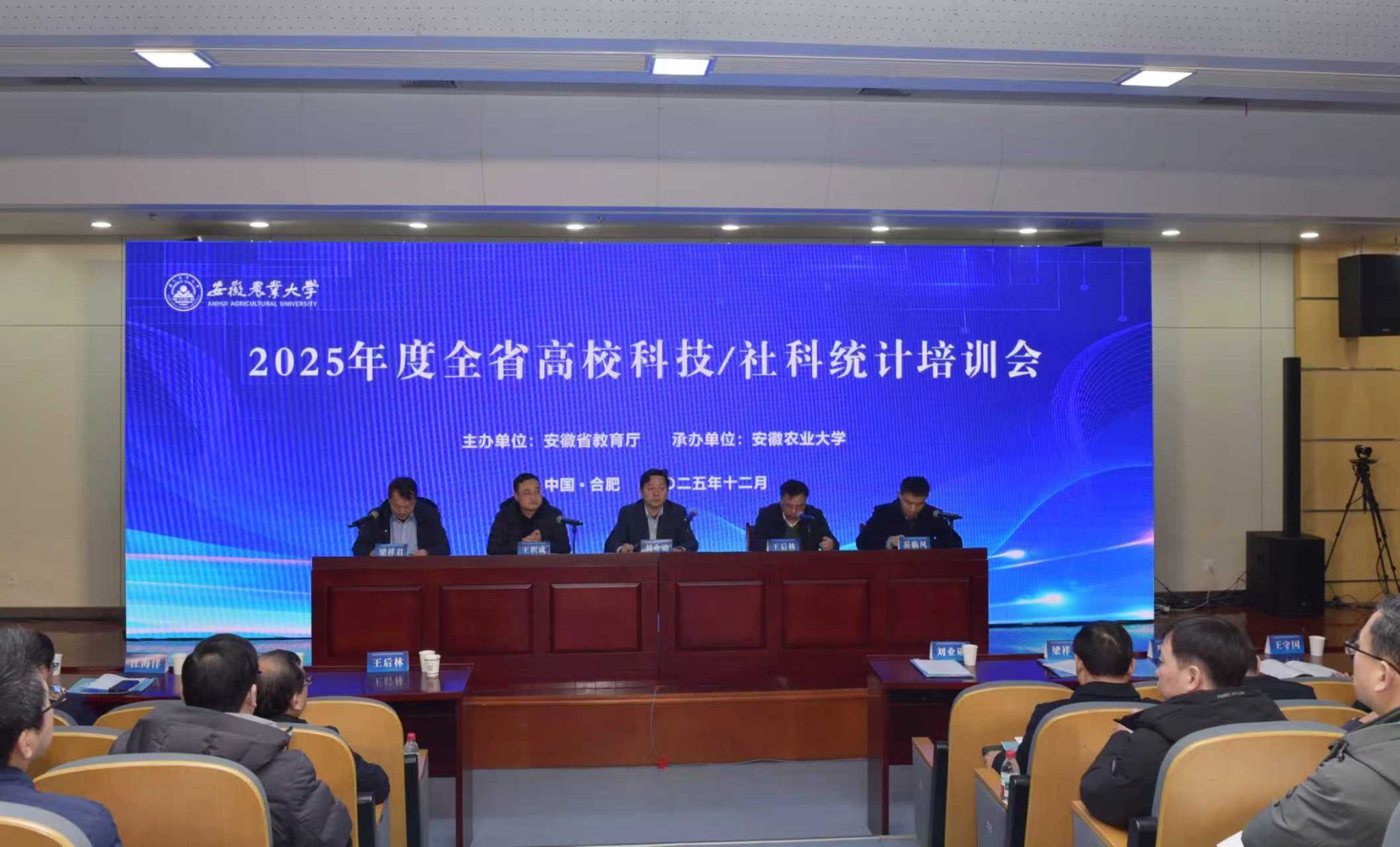 本网讯 12月24日,由安徽省教育厅主办、我校承办的2025年度全省高校科技/社科统计培训会在图书馆第二报告厅举办。省委教育工委委员、省教育厅副厅长刘业勋,省教育厅思政处、科研处、省科技厅基础处负责同志出席会议。党委常委、副校长江海洋出席会议。