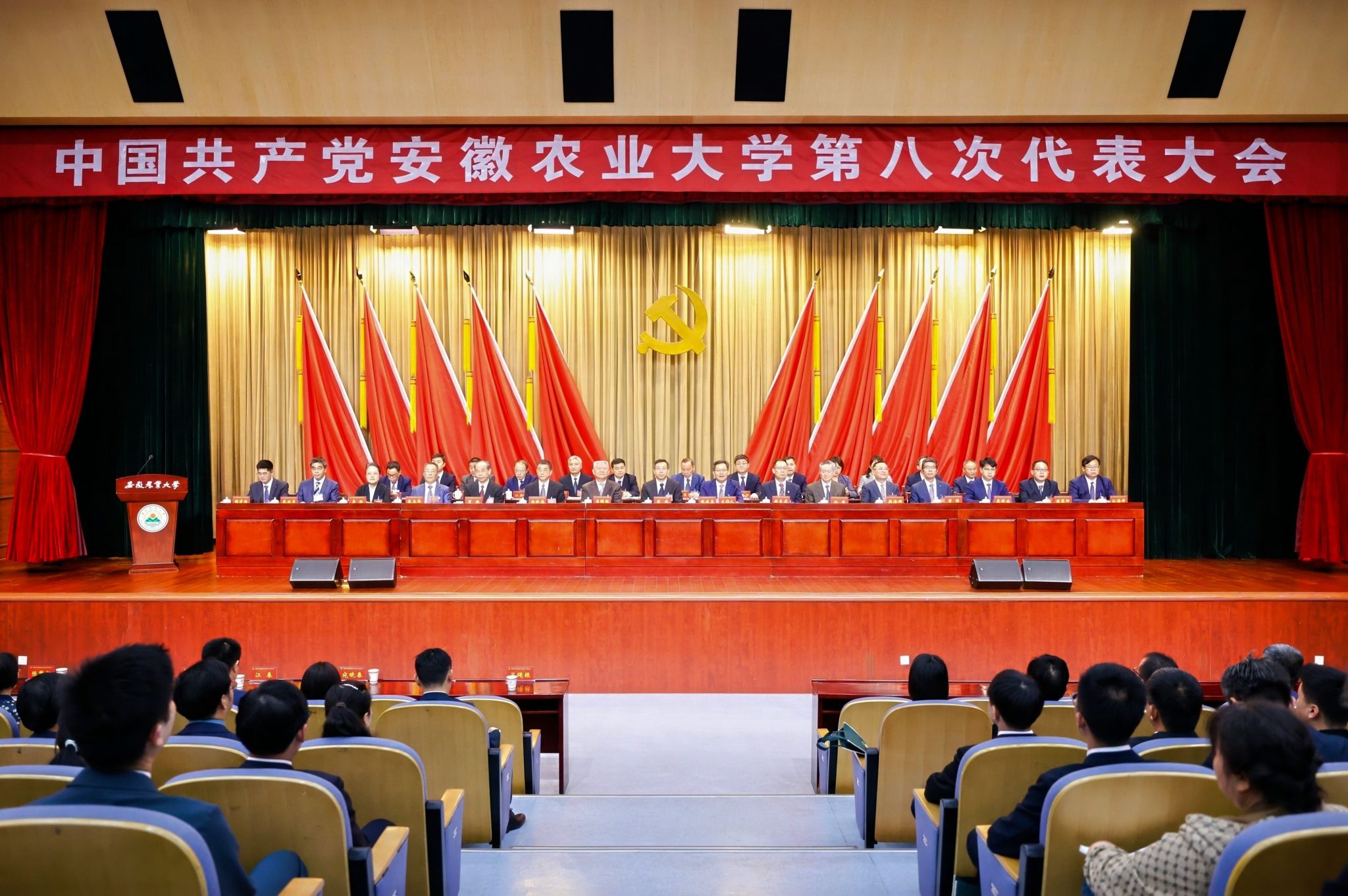 夯实基层组织,筑牢高质量发展之“基”。牢固树立大抓基层鲜明导向,以提升政治功能和组织功能为核心,全面夯实高质量发展的组织根基。优化组织体系。优化设置23个二级党组织和247个党支部,全面完成基层党组织换届及9个新设二级党组织选举工作,推进离退休党支部建设。实现“双带头人”教师党支部书记全覆盖,以“头雁效应”激发“群雁活力”。筑牢战斗堡垒。 严格规范“三会一课”、主题党日等组织生活,常态化开展党员“政治生日”与入党宣誓。发挥党校主阵地作用,举办党员基本培训集中大课和入党积极分子示范培训班,累计培训入党积极分子9000余名,发展党员7050名。颁发“光荣在党50年”纪念章170枚,“七一”期间表彰先进集体、个人339个。打造党建品牌。聚焦“一融双高”建设,以标准化强基、“双创”培育提质、品牌化增效,出版《强基固本 守正笃实:安徽农业大学新时代党建工作实践与创新》书籍。校党委入选全省首批党建工作示范高校,获评全国高校党建工作标杆院系1个、样板支部5个、“双带头人”教师党支部书记工作室1个、“强国行”专项行动团队3个,1个学院党委荣获安徽省“先进基层党组织”。