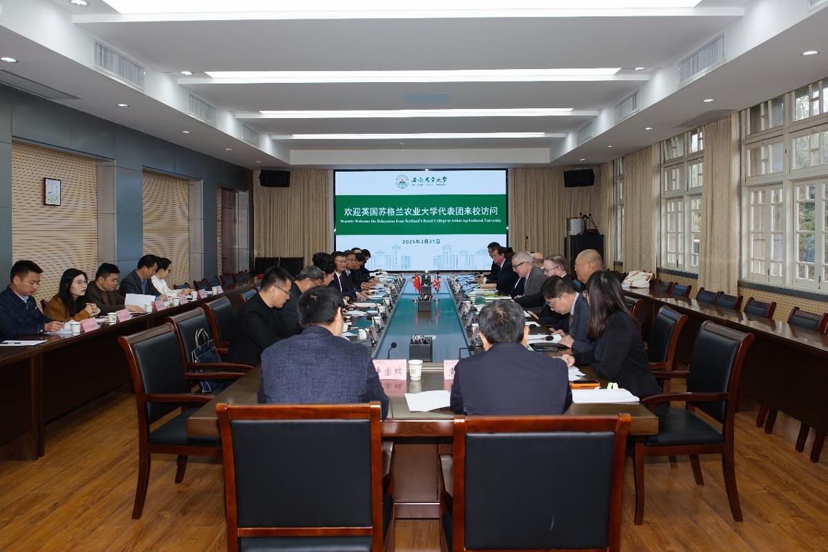 江海洋对加文·麦格雷戈一行表示欢迎,并简要介绍了学校的办学历史、学科建设、科研平台建设和国际化办学成效。他表示,苏格兰农业大学在兽医学、农业经济管理、智慧农业等领域积淀深厚、国际声誉卓著,与我校学科布局、人才培养目标高度契合。他希望以此次来访为契机,进一步拓展深化双方务实合作,实现互利共赢。