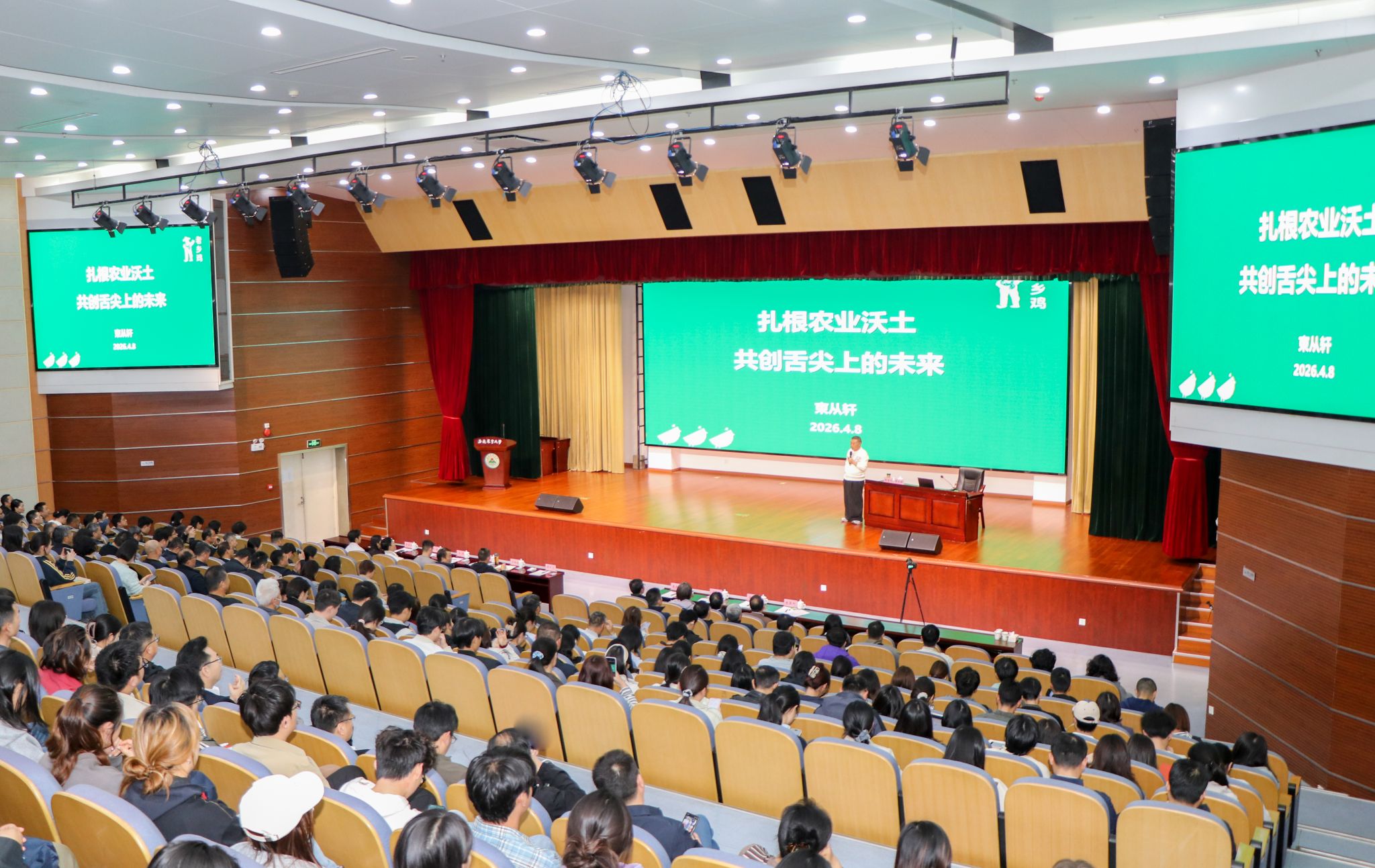 束从轩以《扎根农业沃土 共创舌尖上的未来》为题,回顾了老乡鸡的发展历程与校企合作成果。他紧扣党的二十届四中全会精神,深入阐述了企业如何通过数字化转型、大数据应用、品质管控等实践,在延伸农业产业链、提升农产品附加值、保障食品安全等方面发挥积极作用,有效助力农业现代化和乡村全面振兴。