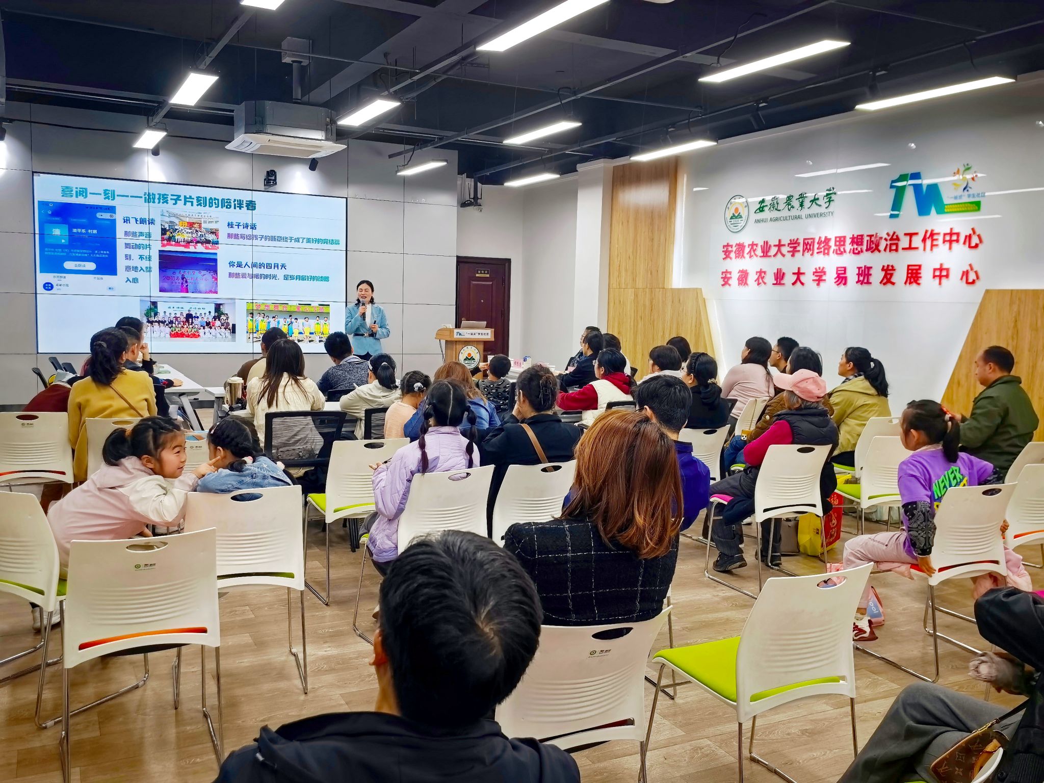 本网讯 为深入推进家庭家教家风建设,传承中华优秀传统文化,助力教职工家庭以文化人、以文润心。4月3日下午,由校妇联、校工会主办的教职工子女教育专题分享会在欣苑三楼一站式南区顺利举行。活动特邀全国先进工作者、国务院政府特殊津贴专家、国家教学名师、马鞍山市红星中学语文正高级教师桂芳担任主讲嘉宾,学校近30组教职工家庭携子女共同参与。