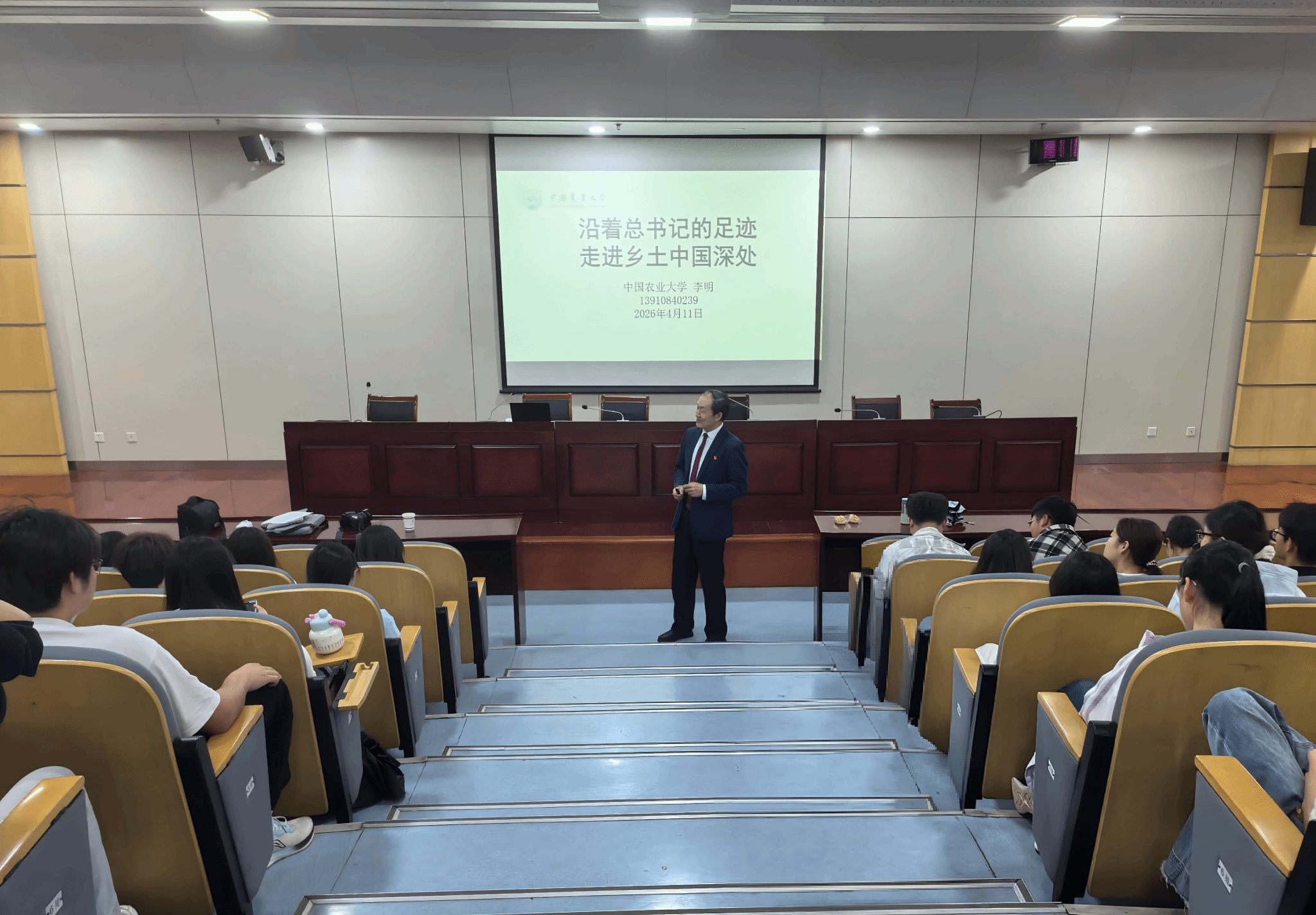 李明教授以《沿着总书记的足迹,走进乡土中国深处》为题,带领同学们深刻感悟“把论文写在祖国大地上”的时代内涵,鼓励青年学子扎根基层、服务“三农”,主动将个人成长融入乡村振兴实践,在田野一线、乡土深处绽放青春光彩、实现人生价值。