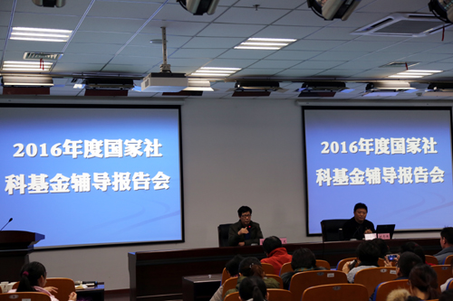 本网讯12月17日下午,学校在生物科技楼召开2016年度国家社会科学基金申报专场辅导报告会。中国科学技术大学刘志迎教授应邀作报告。相关学院负责人、部分教师近200人参加了会议。会议由副校长姚佐文主持。