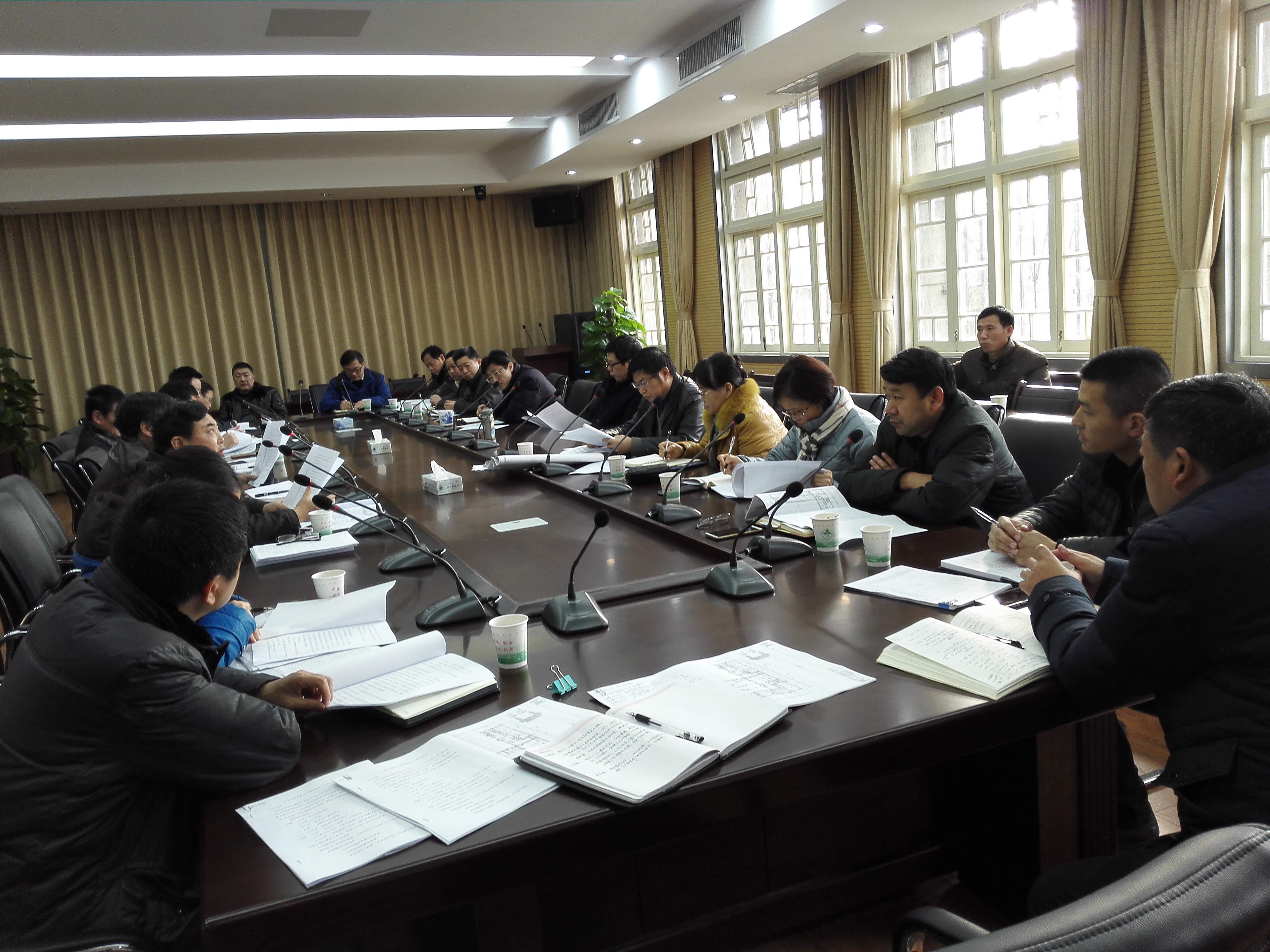 本网讯 12月29日下午,副校长姚佐文主持召开了第三次实验综合楼工程图纸深化会商会。副校长韩军参加会议。理学院、资环学院、植保学院、工学院、茶食学院、信息与计算机学院、轻纺与艺术学院7个学院以及基建办公室、保卫处、现代信息中心、后勤集团4个职能部门的主要负责人参加了会议。
